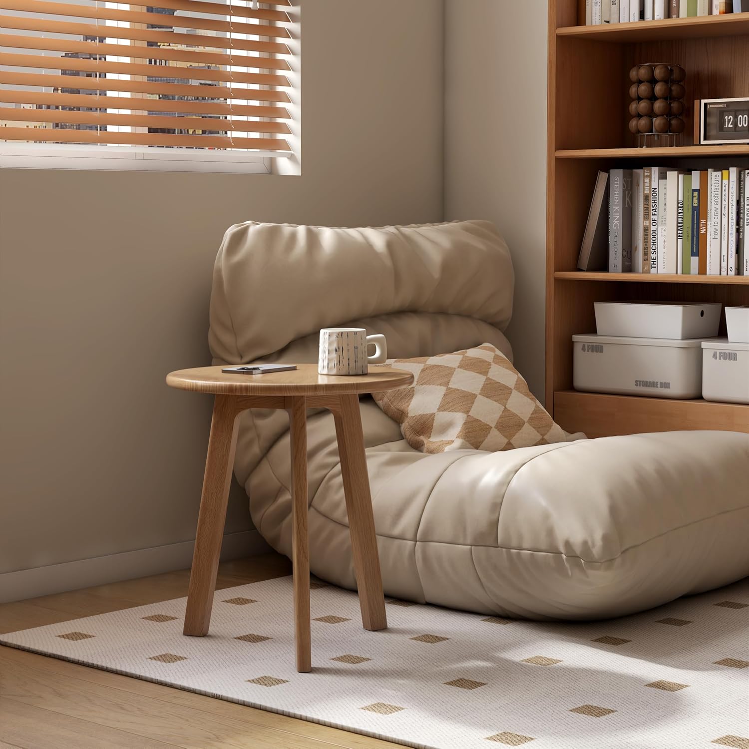 100% Solid Oak Round Side Table, Small Bedside Table for Small Spaces, Living Room End Table with Stable Frame for Bedroom Couch, (Natural, 17.71" D x 19.68" H)