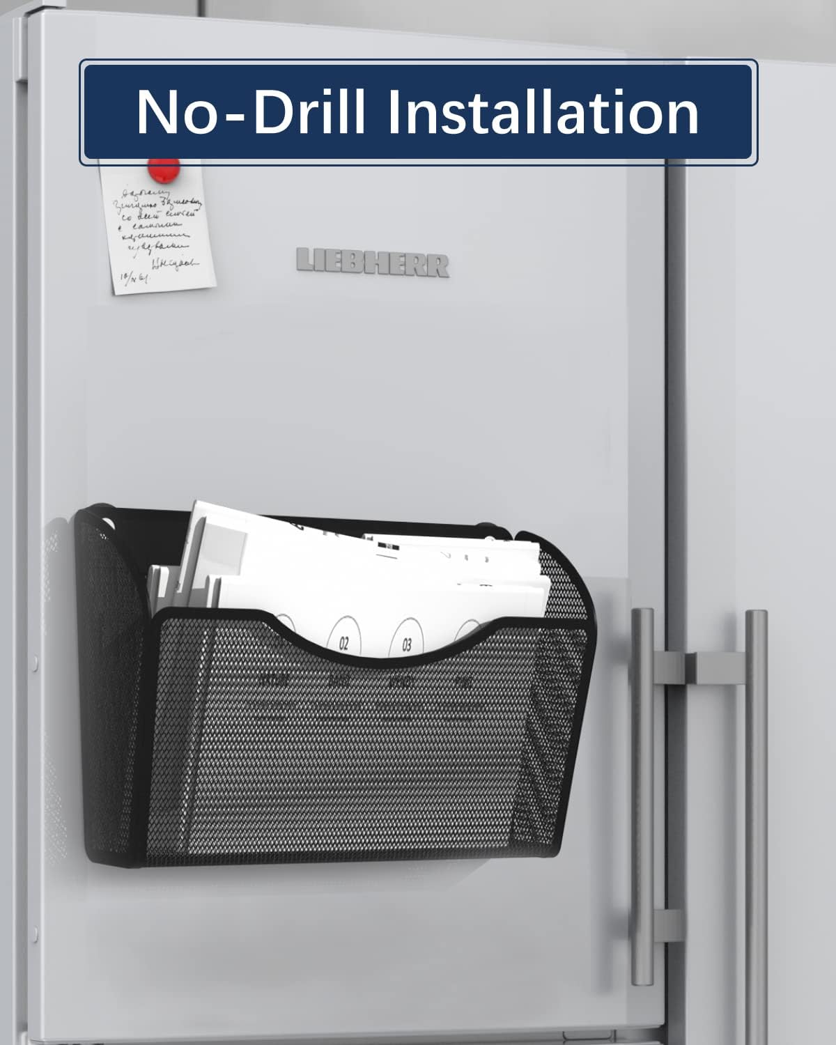 1-Tier Magnetic File Holder - No Drilling Installation File Organizer, Large Capacity Magnetic File Holder for Refrigerator, File Cabinets, Whiteboard, Office, Kitchen