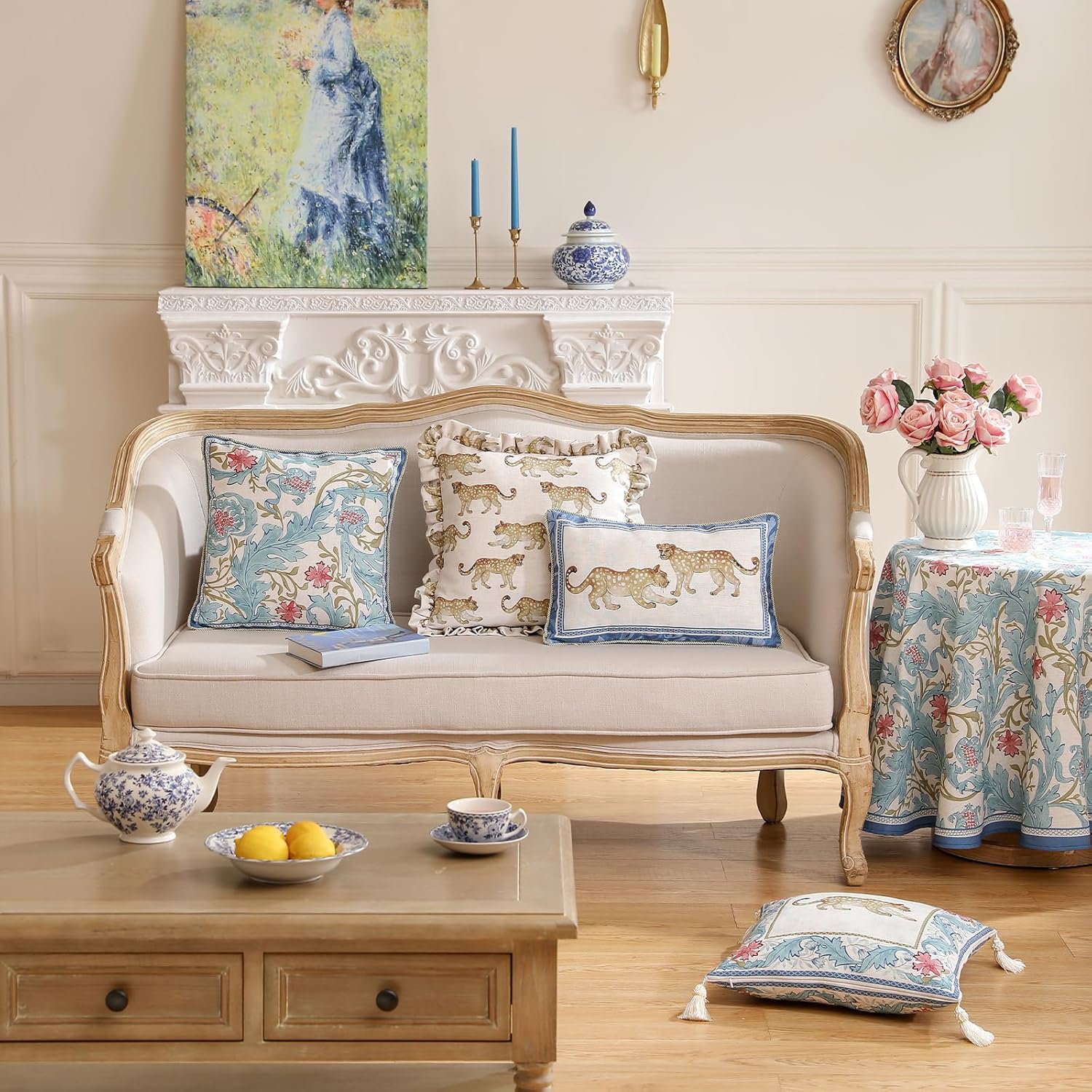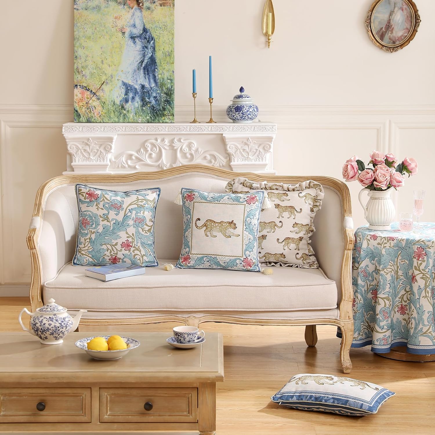 patdrea Designer Throw Pillow Covers for Couch,Vintage French Linen Pillows Cover with Cheetah Pattern and Luxury Pendant,Fall Farmhouse Decorative Pillowcases for Bed Living Room Outdoor Set of 4