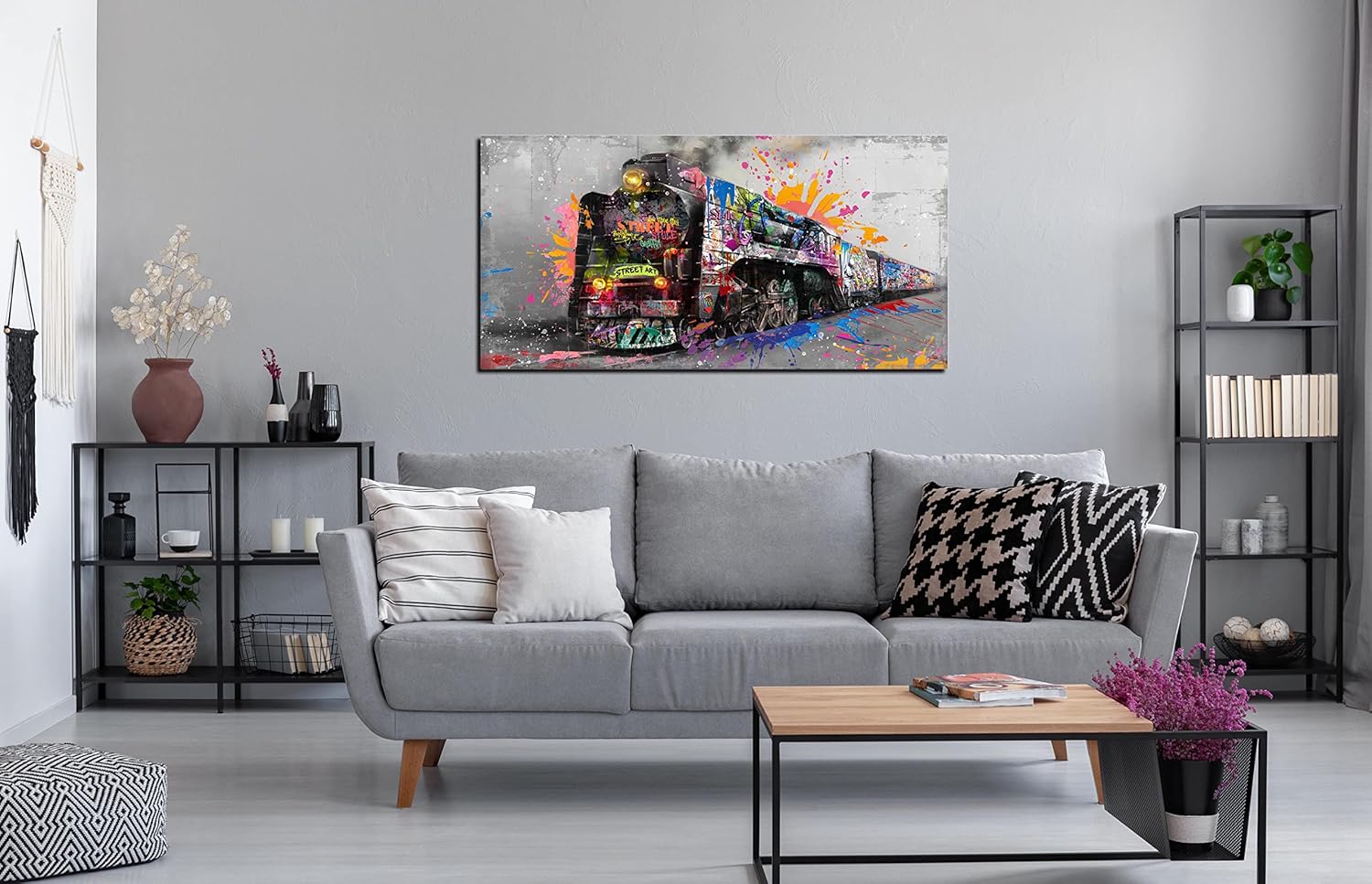 JKWALL77 Graffiti Train Wall-Art - Banksy Canvas Wall Art For Living Room - Modern Art Wall Decor Ready To Hang Size 40" x 20"