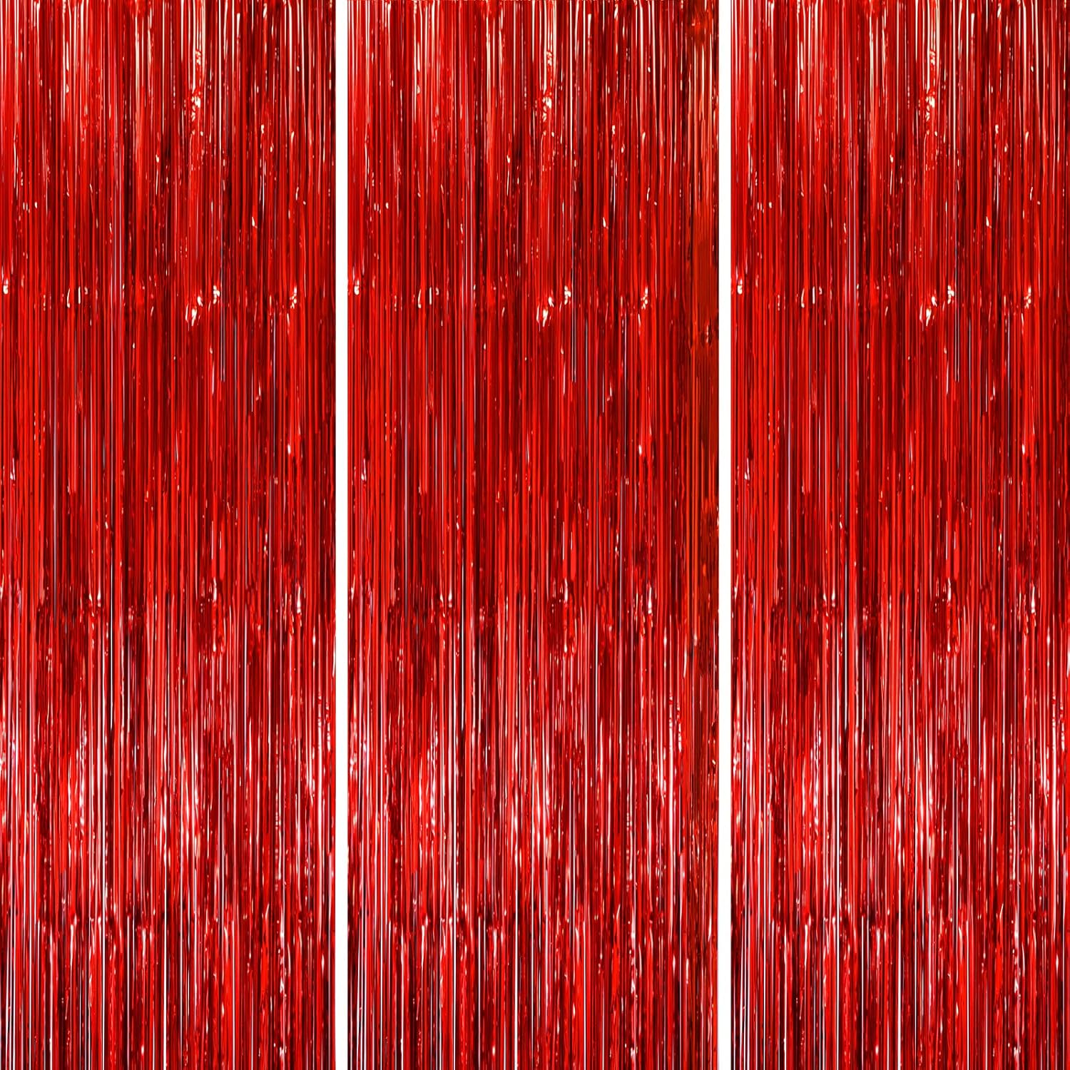 3 Pack 3.3x8.2 Feet Red Foil Fringe Backdrop Curtains, Tinsel Streamers Birthday Party Decorations, Fringe Backdrop for Graduation, Baby Shower, Gender Reveal, Disco Party