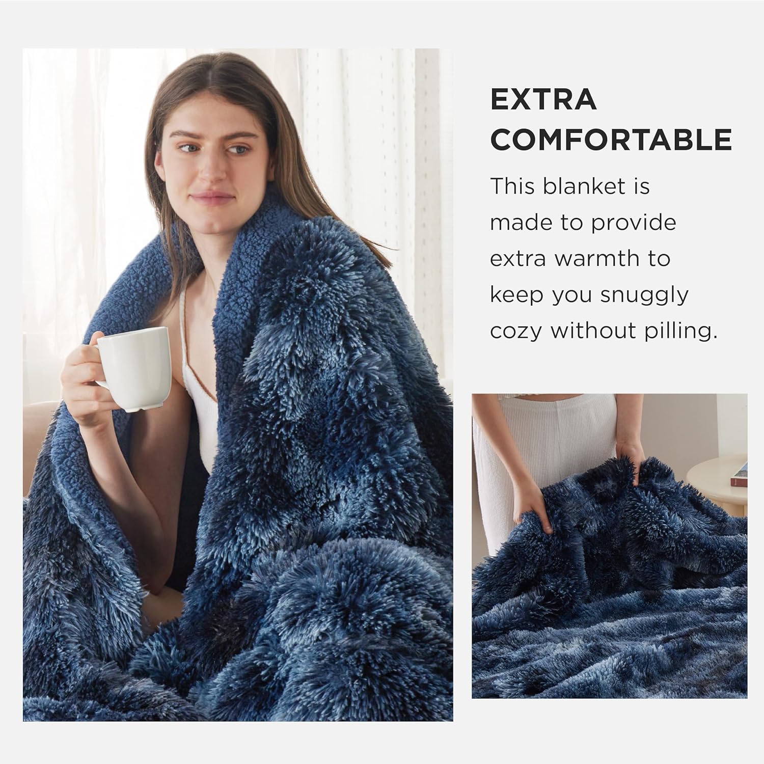 Bedsure GentleSoft Fluffy Navy Blue Throw Blanket, Tie Dye Blue Decor Navy Gifts for Men, Soft Cozy Fuzzy Plush Minky Thick Warm Sherpa Fleece Faux Fur Blanket for Couch, Blanket Gifts for Him, 50x60