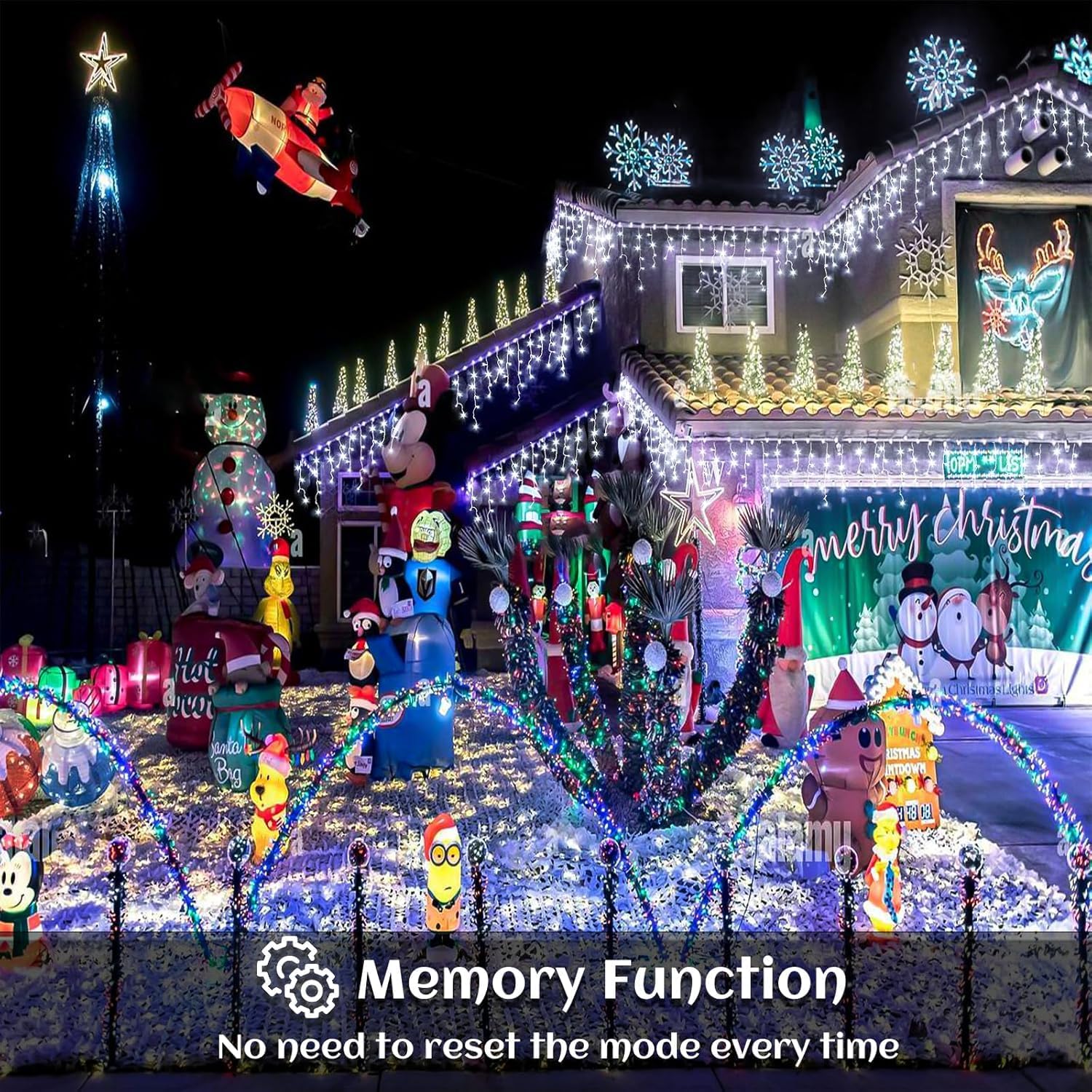 - 【Waterproof Christmas icicle lights】The icicle lights is perfect for outdoor using, including heavy rain and snow. Sealed LED beads, thick gauge wire and coating all are IP44 waterproof, they make the outdoor icicle lights durable and worked great through the season. But please kindly note that the plug is not waterproof, please do some protection or keep them away from water.