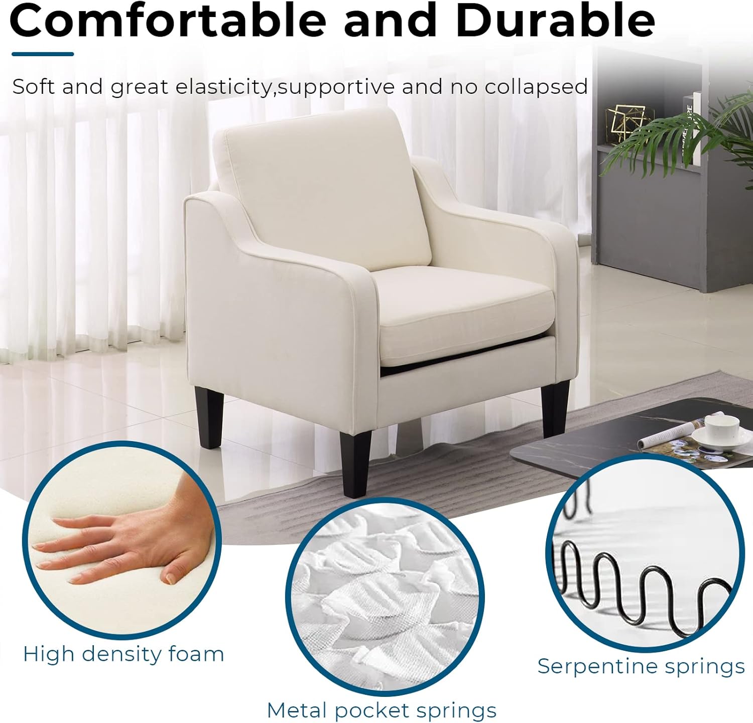 VINGLI Modern Accent Chairs Set of 2, Beige Living Room Chairs Comfy Armchair for Bedroom, Upholstered Sofa Chair Reading Chair for Small Spaces, Apartment, Waiting Room