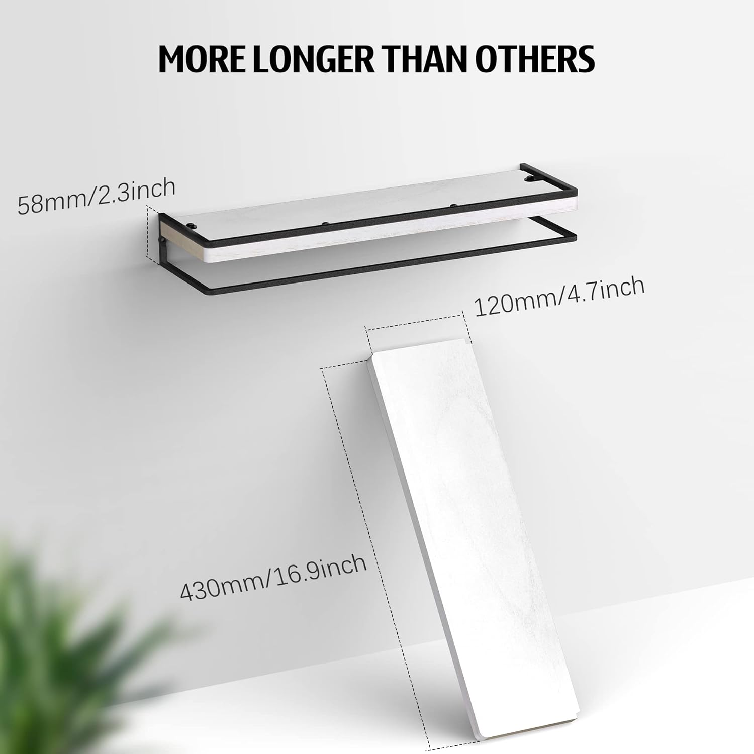 Meangood Floating Shelves Wall Mounted Set of 2, Wall Shelf with Towel Bar Rustic Wood Wall Storage Shelves for Bedroom,Living Room,Bathroom, Kitchen White