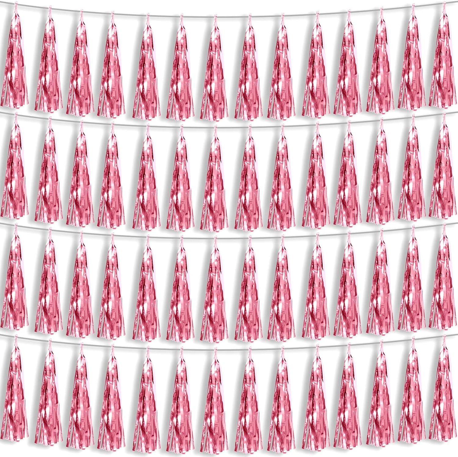 4P Light Pink Foil Fringe Metallic Tassel Streamers Banner Tassel Garland for Parade Floats, Bachelorette, Wedding, Birthday, Halloween, Christmas, Bridal/Baby Shower Party Decorations