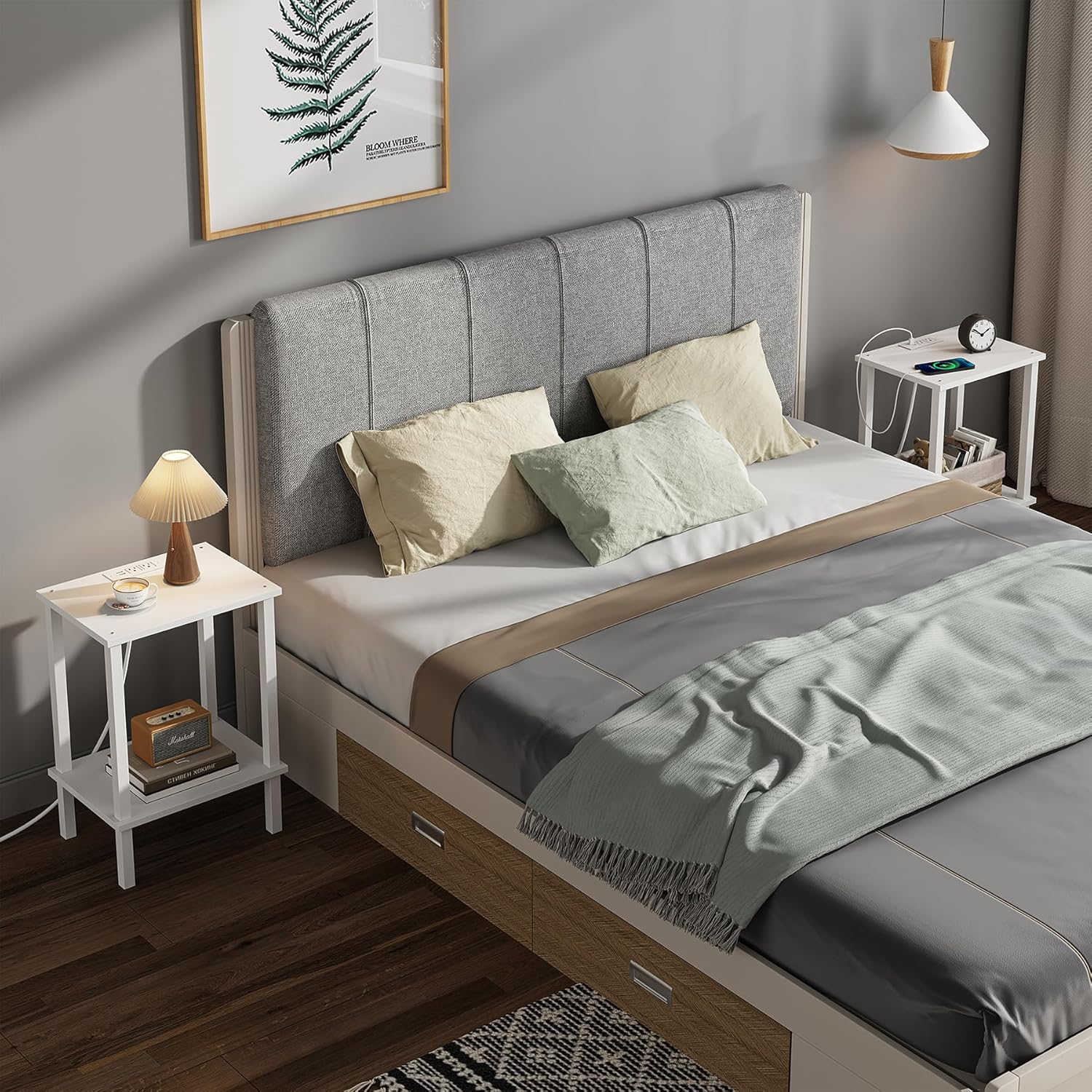 TUTOTAK End Table with Charging Station, Small Side Table with Outlets, Nightstand Bedside Table, 2-Tier Storage Shelf for Small Space, Living Room, Bedroom, White TB01BW040