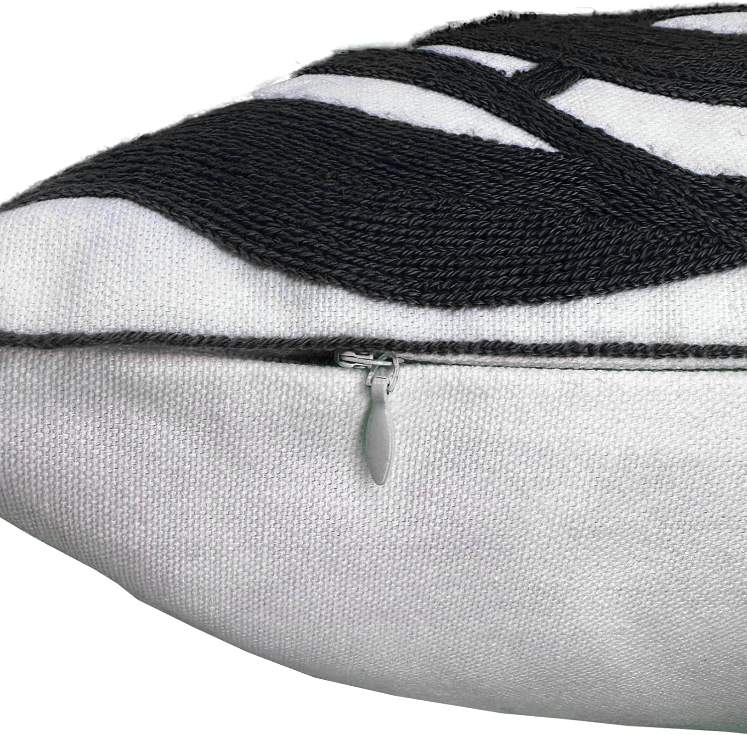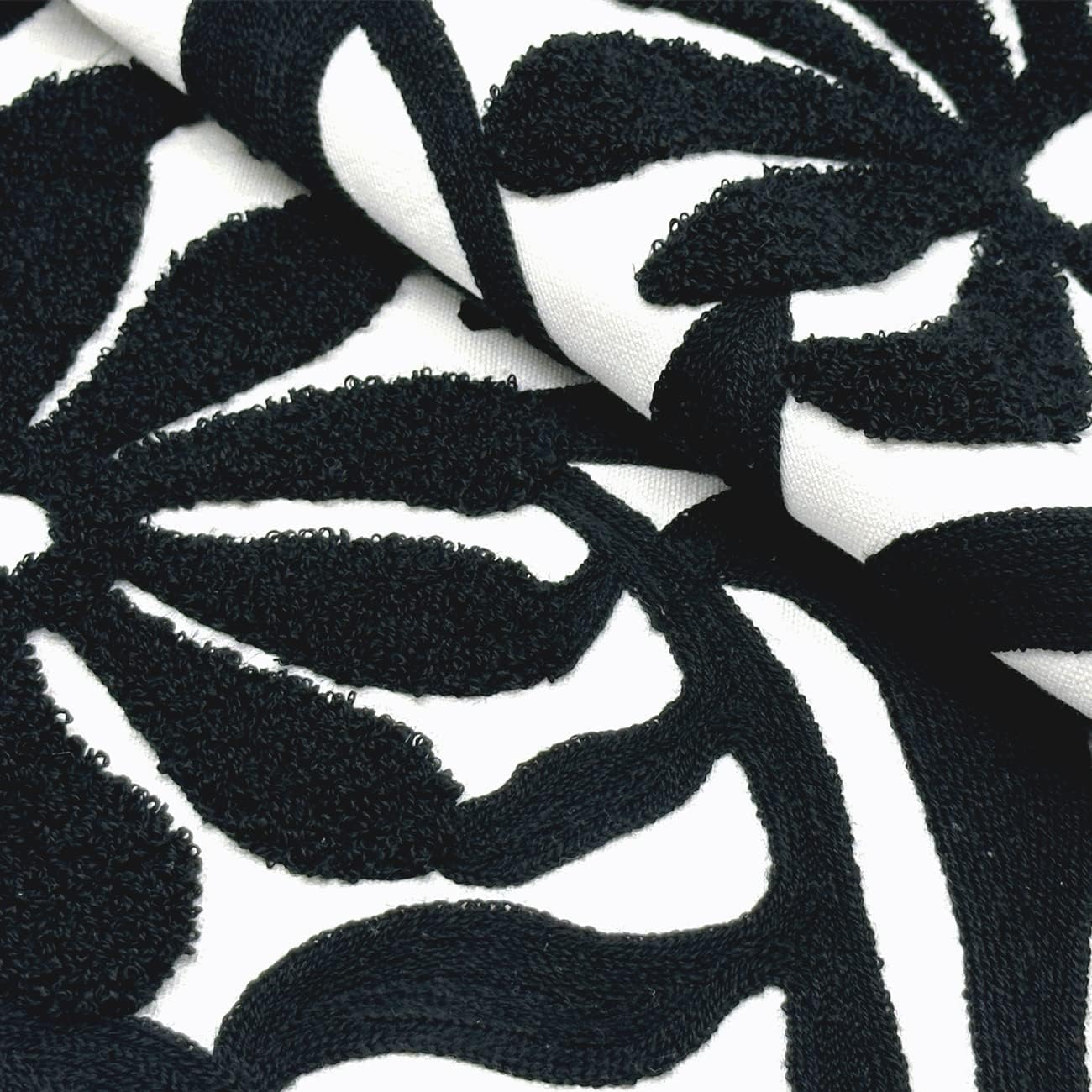 Alysheer Farmhouse Floral Leaves Embroidered Decorative Throw Pillow Cover 18x18 inches, Boho Tufted Flowers Embroidery Pattern Chic Cotton Cushion Case for Couch Bed Sofa Living Room(Black)