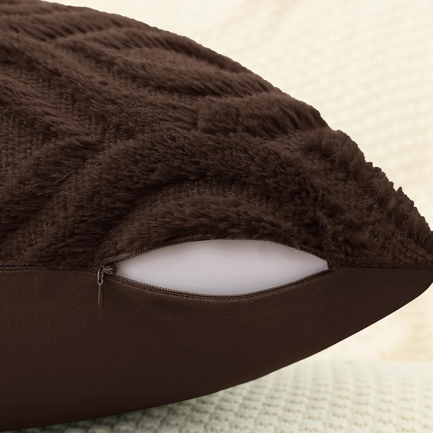 decorUhome Throw Pillow Covers 12x20 Inch Set of 2, Soft Plush Decorative Faux Fur Dark Brown Solid Couch Pillow Covers, Accent Farmhouse Neutral Lumbar Euro Pillow Cases for Sofa Bed Living Room