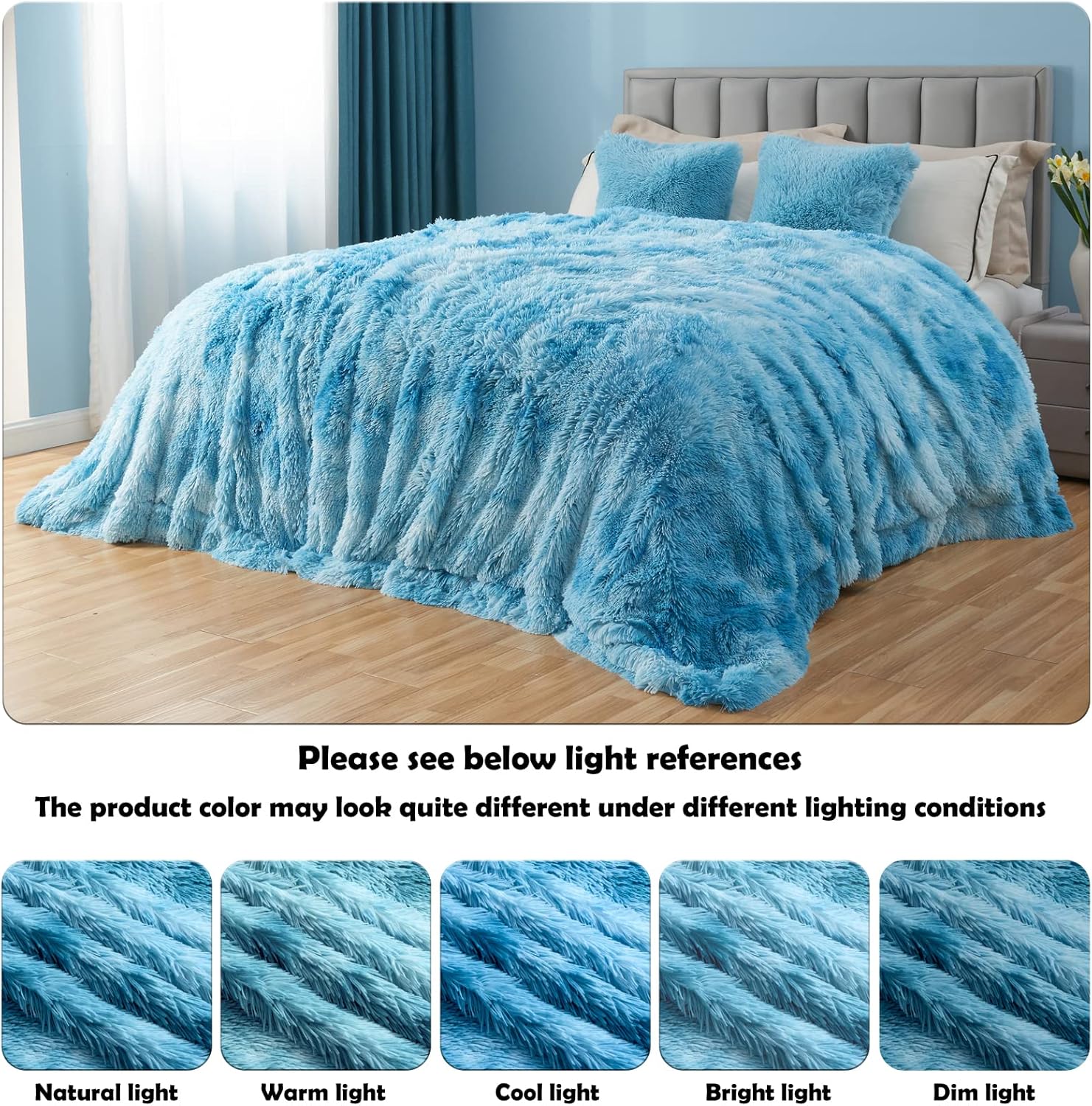 GONAAP Fuzzy Faux Fur Throw Blanket Queen Size Tie-dye Ocean Blue Super Soft Cozy Plush Fuzzy Shaggy Blanket for Couch Sofa Bed (Tie-dye Ocean Blue, Queen(90"x90"))