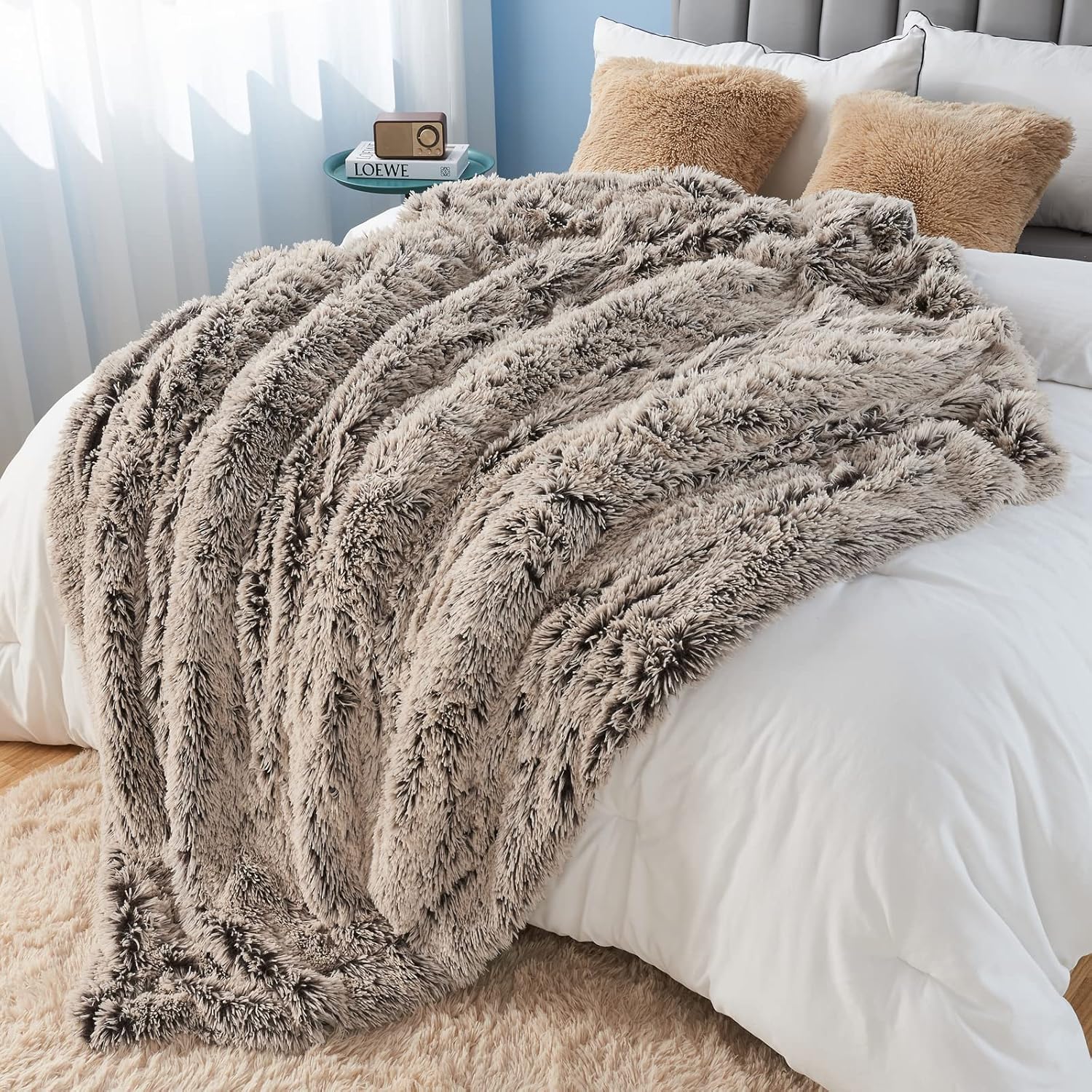 GONAAP Fuzzy Faux Fur Throw Blanket Queen Size Frosty Brown Super Soft Cozy Plush Fuzzy Shaggy Blanket for Couch Sofa Bed (Frosty Brown, Queen(90"x90"))