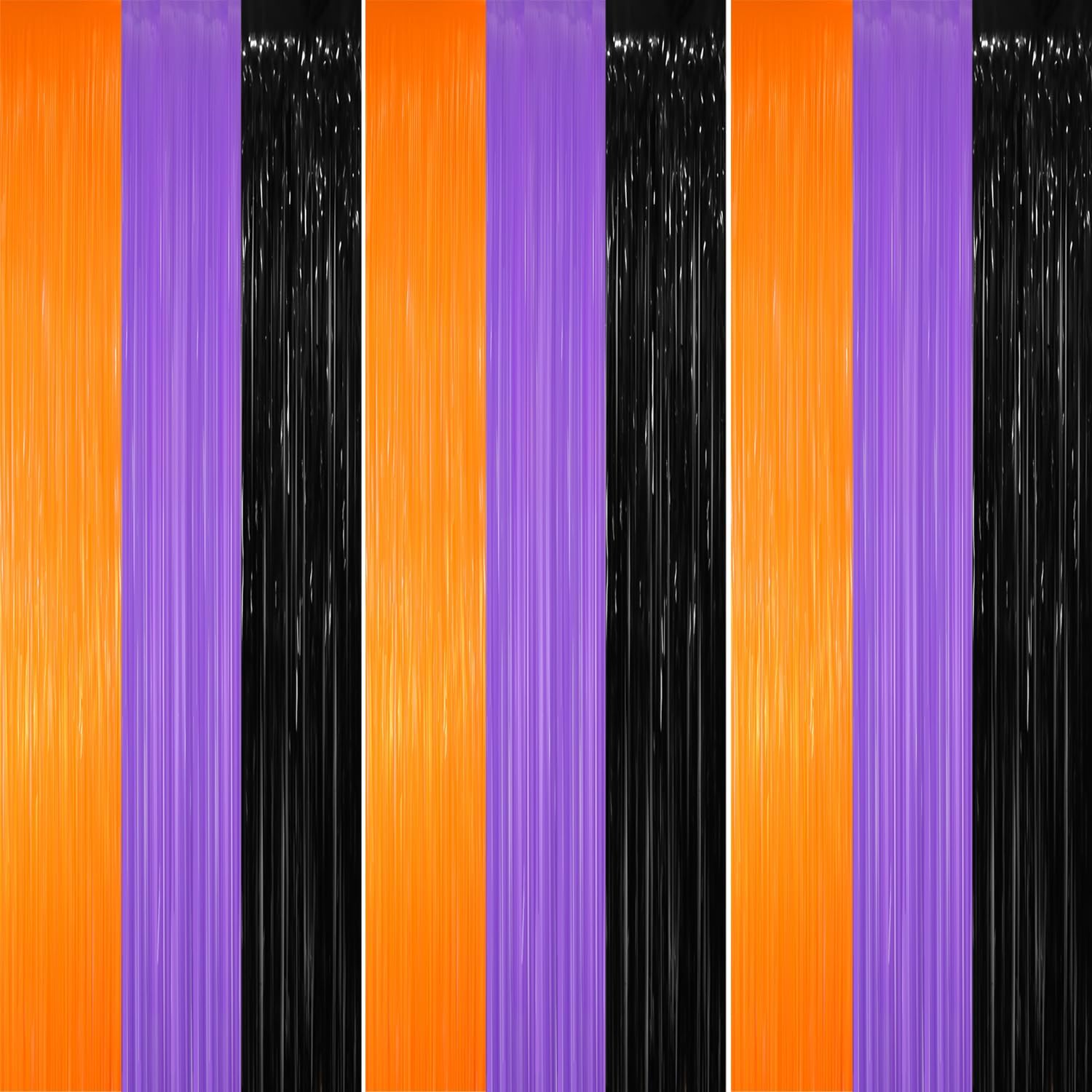 - Package Includes:3 Packs Black&Orange&Purple Foil Fringe party backdrop