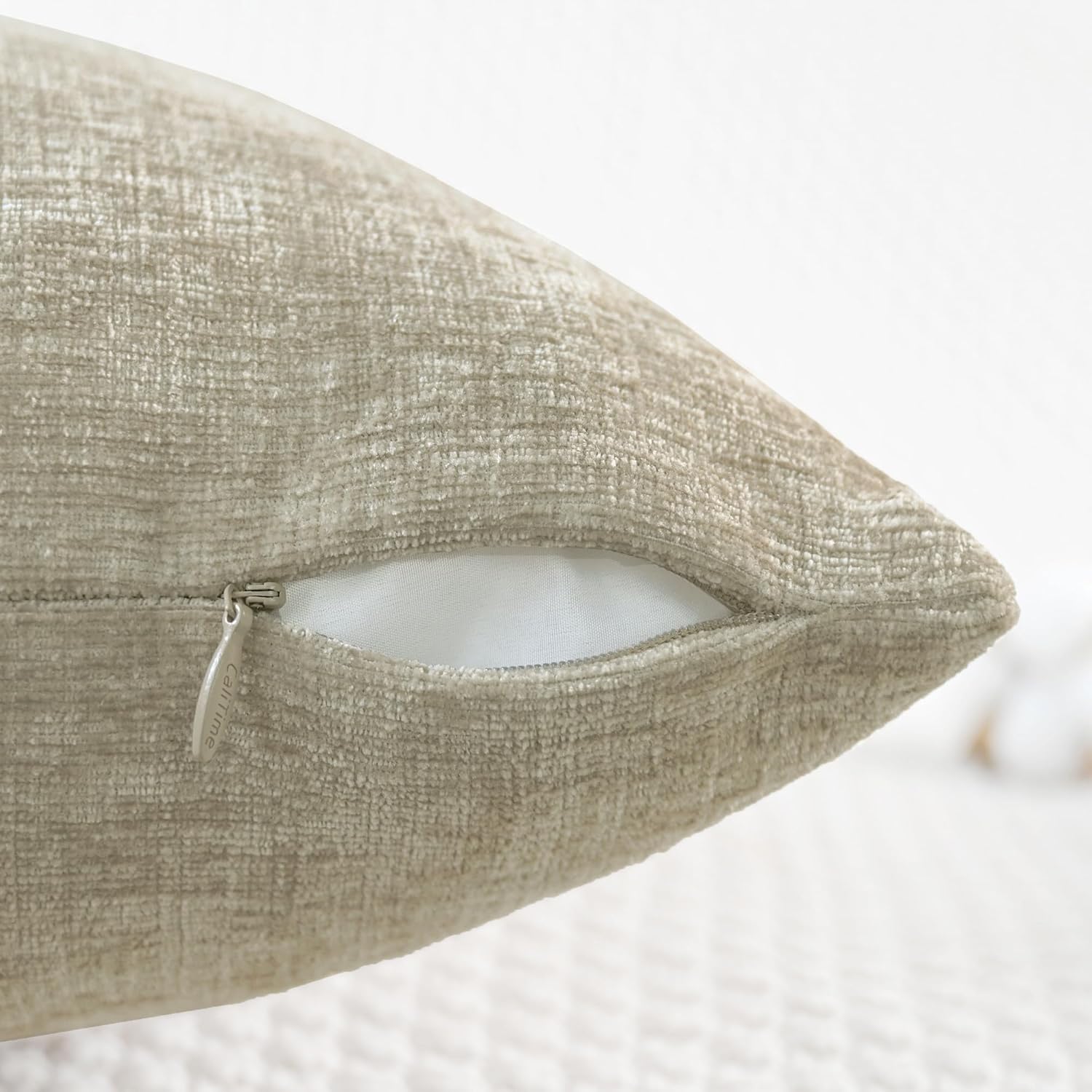 CaliTime Throw Pillow Covers Decorative 18 X 18 Inches Pack of 4 Cozy Chenille Cushion Cases for Couch Sofa Bed Living Room Home Light Taupe