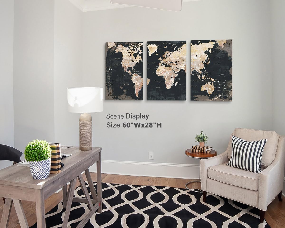 - DECORATIVE MAP - Professionally printed works of art on quality canvas. Each panel is 20" by 28", set of 3, the overall size is 60" x 28"