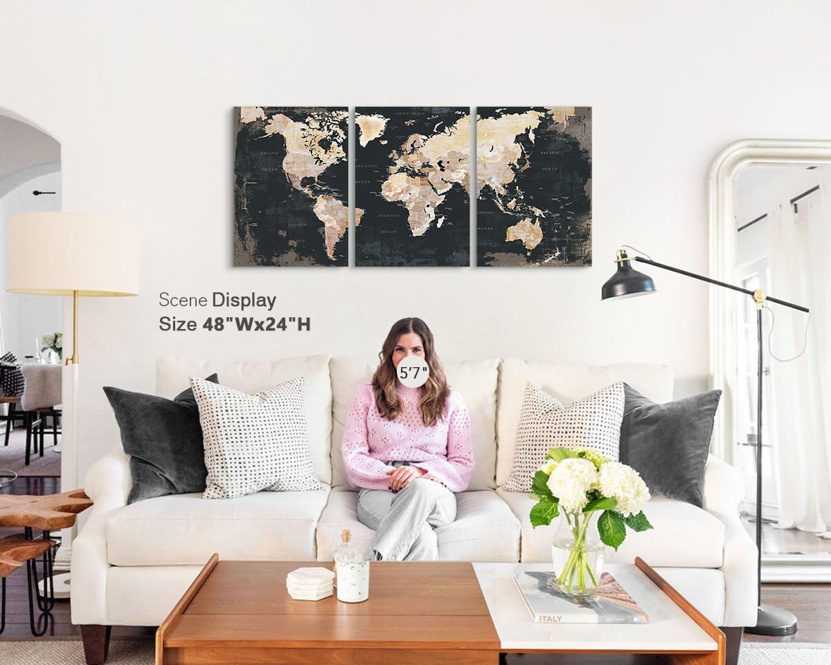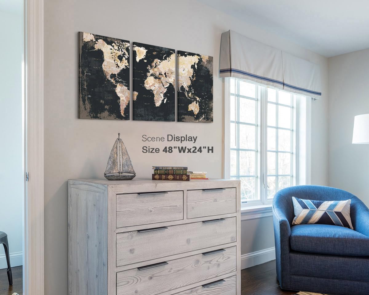 - DECORATIVE MAP - Professionally printed works of art on quality canvas. Each panel is 16" by 24", set of 3, the overall size is 48" x 24"