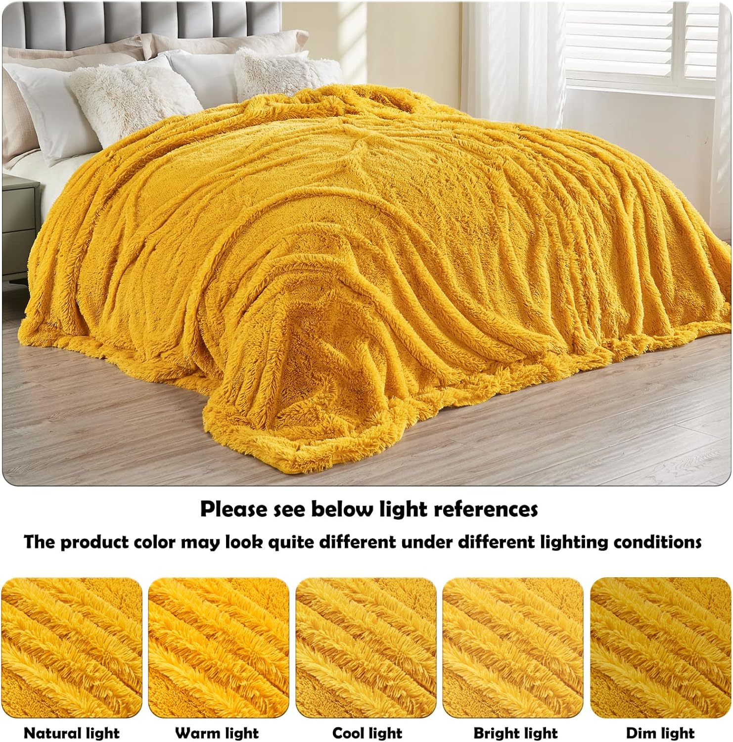 GONAAP Fuzzy Faux Fur Throw Blanket Queen Size Mustard Yellow Super Soft Cozy Plush Fuzzy Shaggy Blanket for Couch Sofa Bed (Mustard Yellow, Queen(90"x90"))