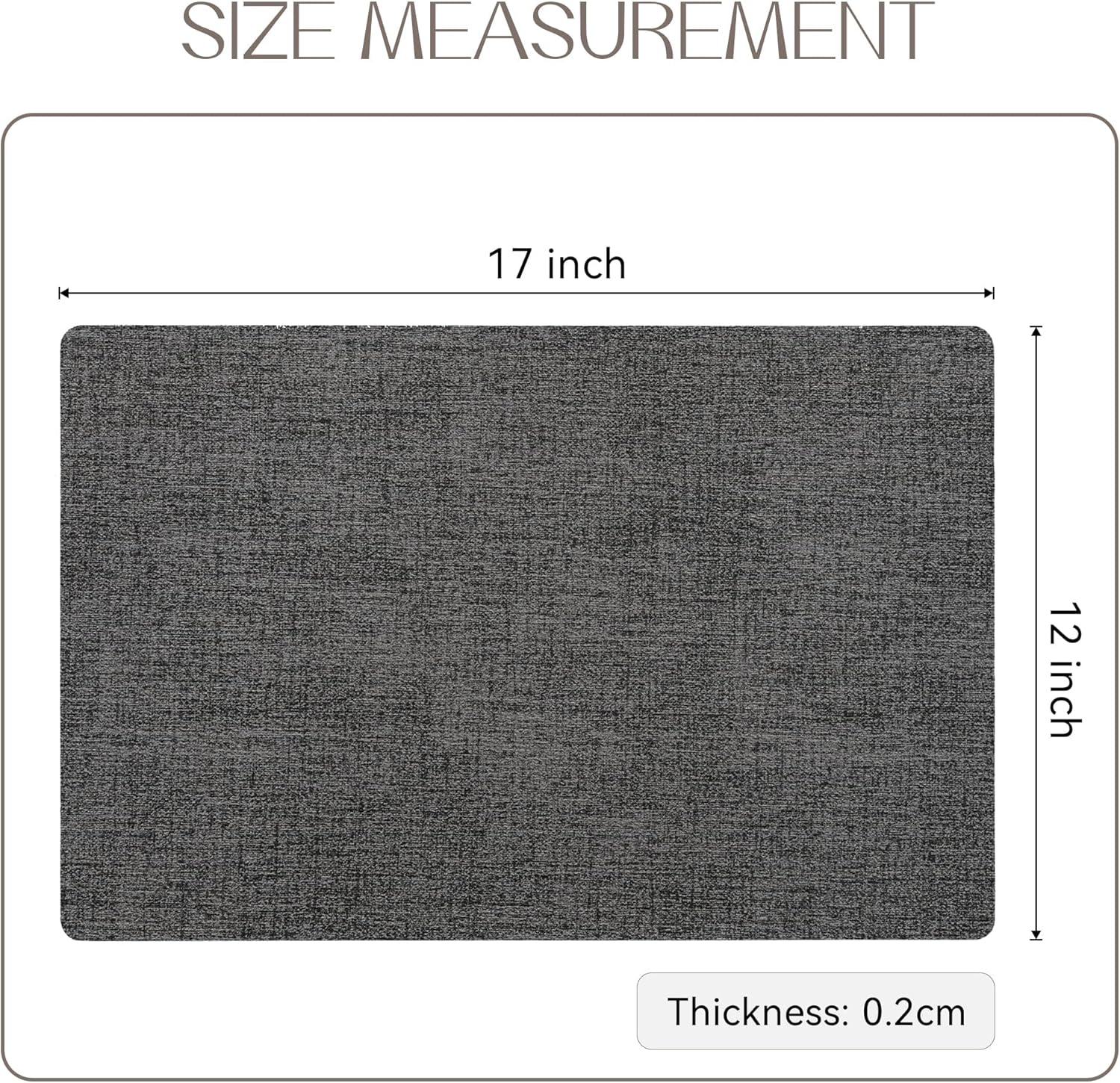 Romanstile Vinyl Placemats Set of 6-12 X 18 Inch - Heat Resistant Place Mats 100% Waterproof Oilproof Wipeable Reversible Faux Leather Table Mats for Kitchen/Dining/Party/Holiday, Dark Grey
