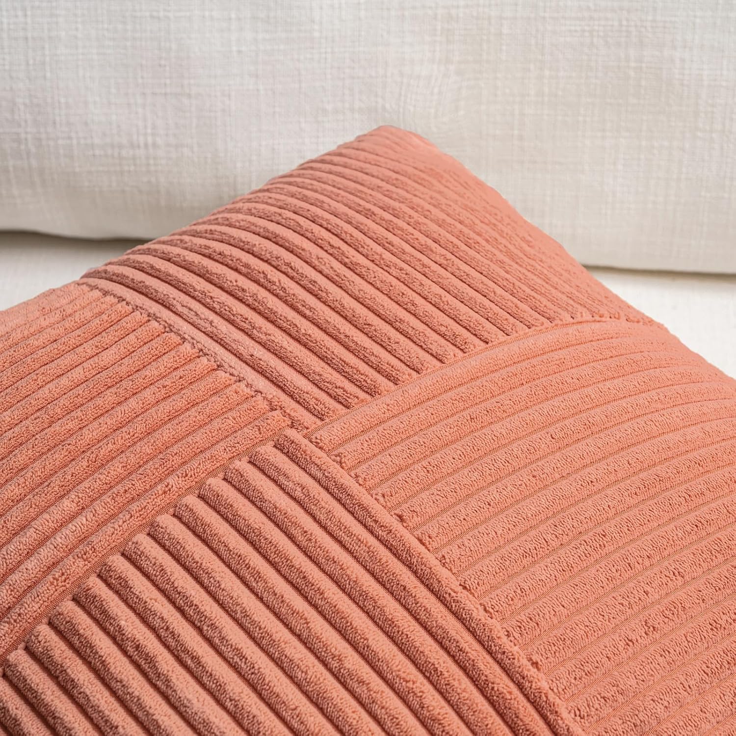 Fancy Homi 2 Packs Coral Decorative Throw Pillow Covers 18x18 Inch for Living Room Couch Bed, Rustic Farmhouse Boho Home Decor, Soft Corss Corduroy Patchwork Textured Peach Cushion Case 45x45 cm
