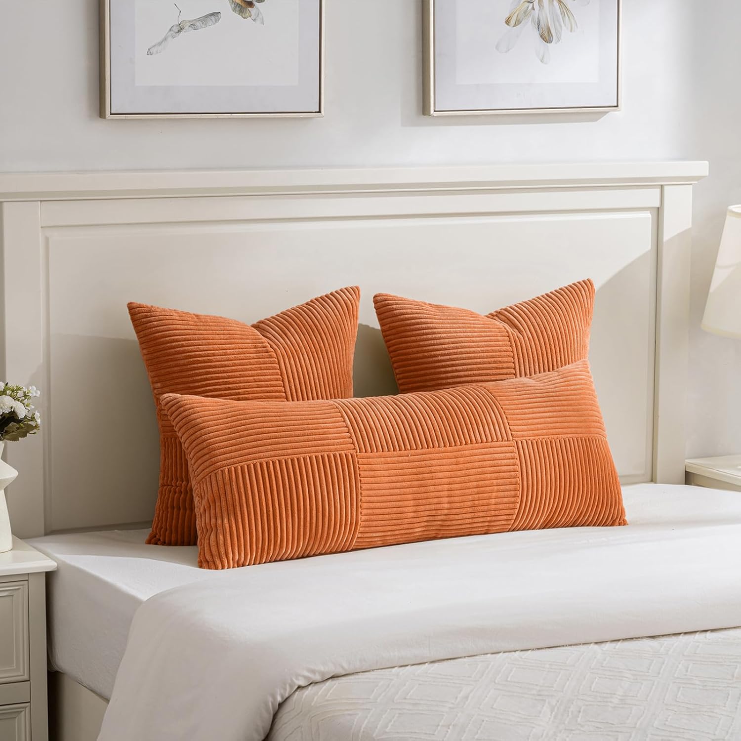 Fancy Homi 2 Packs Burnt Orange Decorative Throw Pillow Covers 18x18 Inch for Living Room Couch Bed Sofa, Farmhouse Boho Home Decor, Soft Corss Corduroy Patchwork Textured Accent Cushion Case 45x45 cm