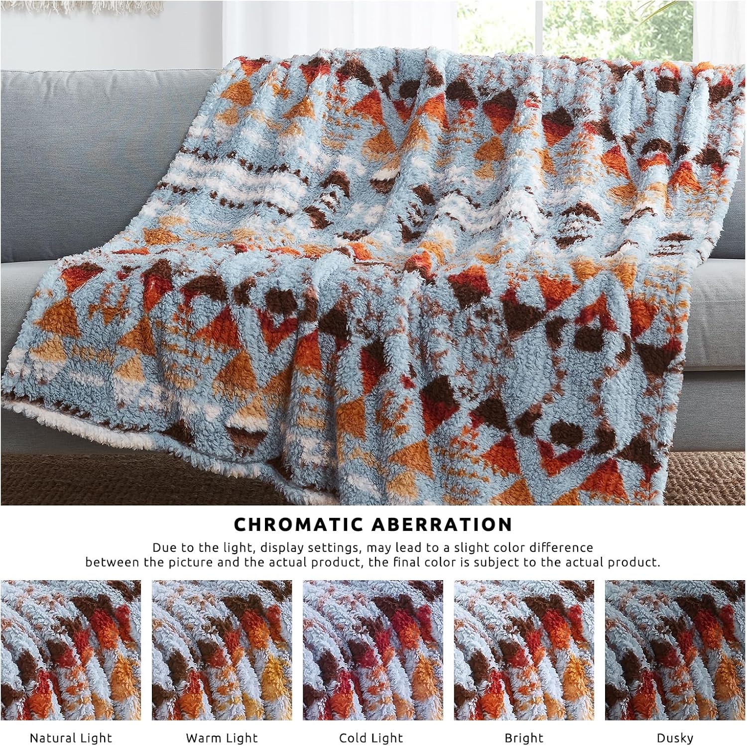 CASAAGUSTO Boho Sherpa Blanket,Teal Aztec Twin Blanket, Ultra Soft, Warm, Cozy, Plush, Thick Fleece Western Blanket for Couch, Bed, Sofa (Blue Grey 60 * 80 Inch)