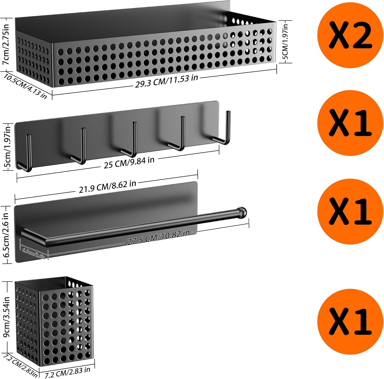- 【Multiple Combinations】: The only patented design on the market, high quality and ergonomically designed. Magnetic fridge organizer is a great helper. The 2 tiers magnetic fridge organizer has a large capacity with organizing your spices, cans, drinks, snacks, etc. The size of paper towel holder can accommodate all kitchen paper on the market. The magnetic hook organizer features 5 hooks, making it perfect for storing kitchen utensils, or other small items. We have an additional magnetic utensil holder, you can storage kitchen gadgets, mark pens and whiteboard erasers etc.