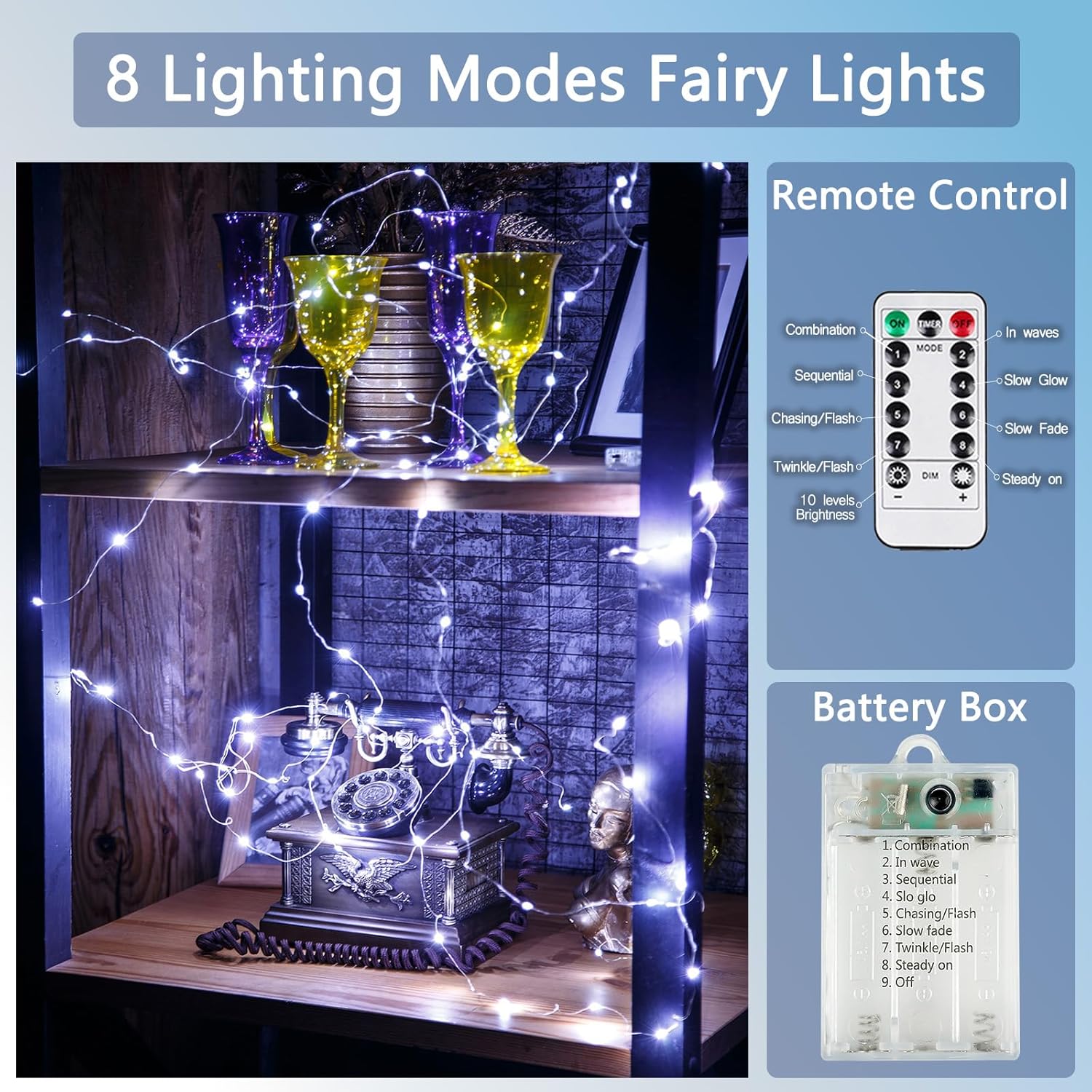 - Safe for use with low volatege: With very low voltage batteries (3 x AA batteries) that make the tiny fairy lights safe for both adults and children to touch and use. The remote controled twinkle lights are cool and they make a perfect addition to your bedroom or Kids' party decorations