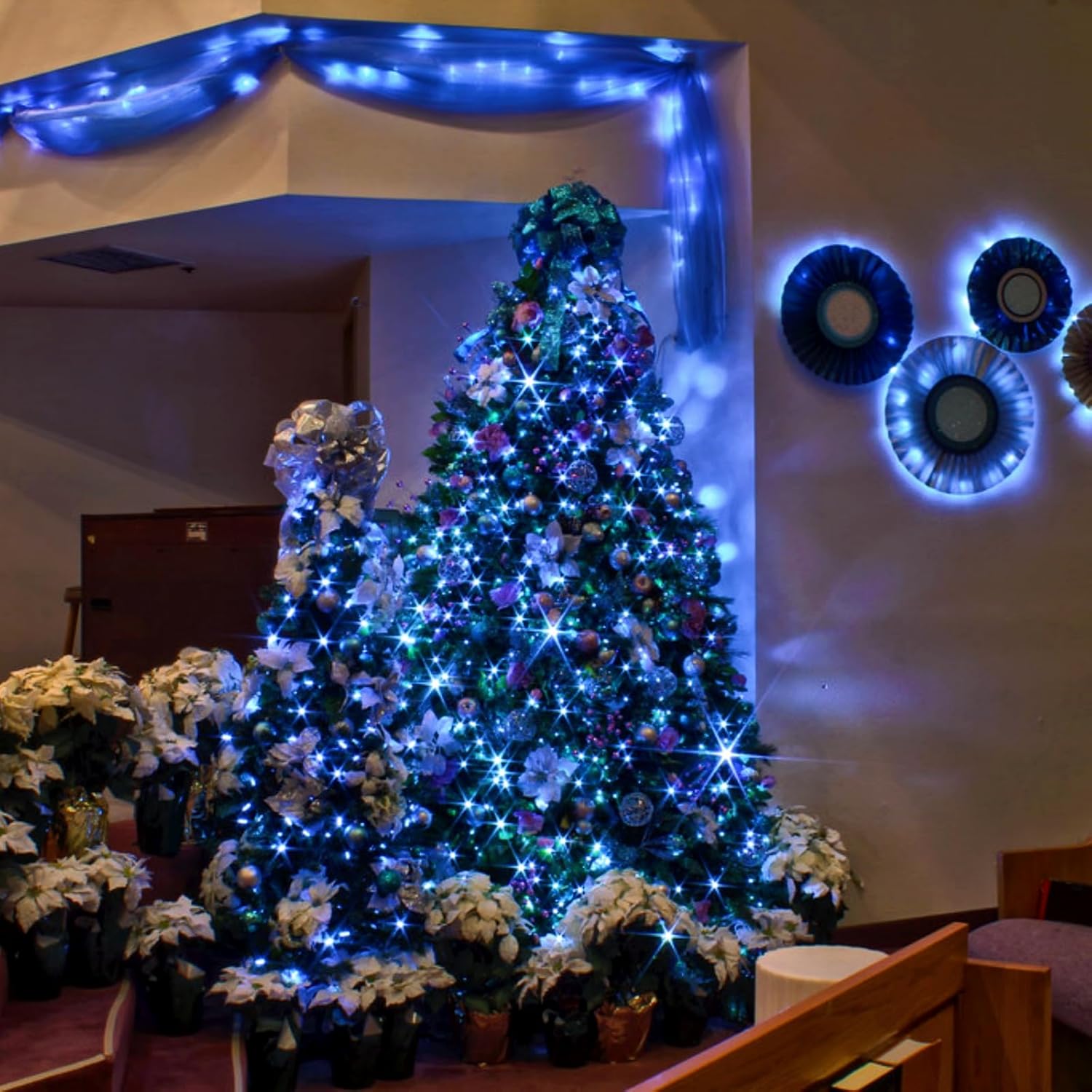 - Bule Lights Battery Operated: Made with ultra-bright LED and durable silver-coated copper wire and battery box, the blue fairy lights will be an ideal choice for your Independence Day decor. Each set contains 3pcs of bule string lights and 1pc of remote control. Each String light length is 26ft with 80 LED (AA battery case, batteries not included.)