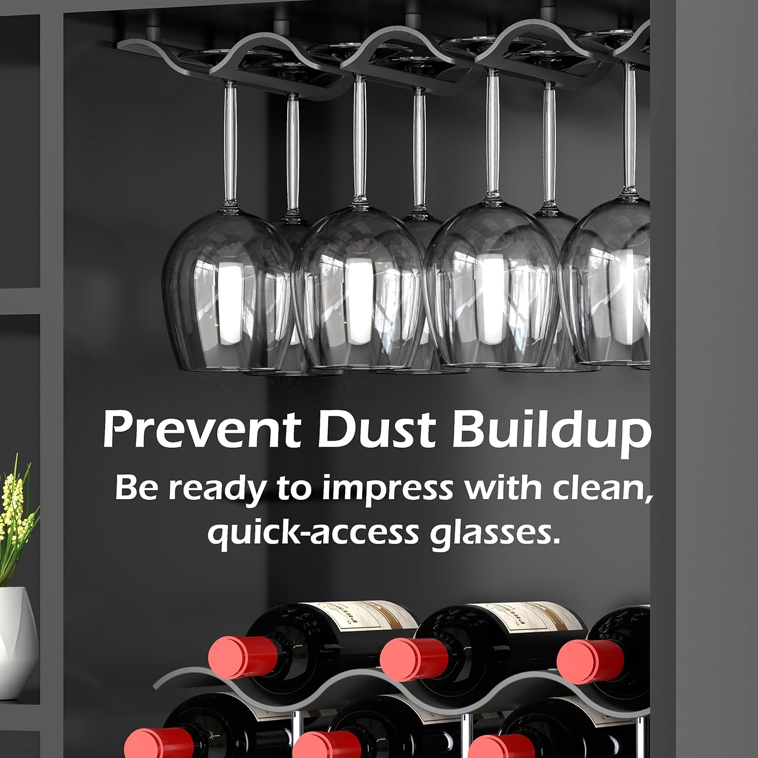 Bariboo Wine Glass Storage Case – Hang 8-12 Glasses on Your 18.7 x 9 x 1.7 In., Dust-Free Wine Glass Holder – Under-Shelf & Under-Cabinet Wine Glass Holder Rack with Assembly Manual & Video