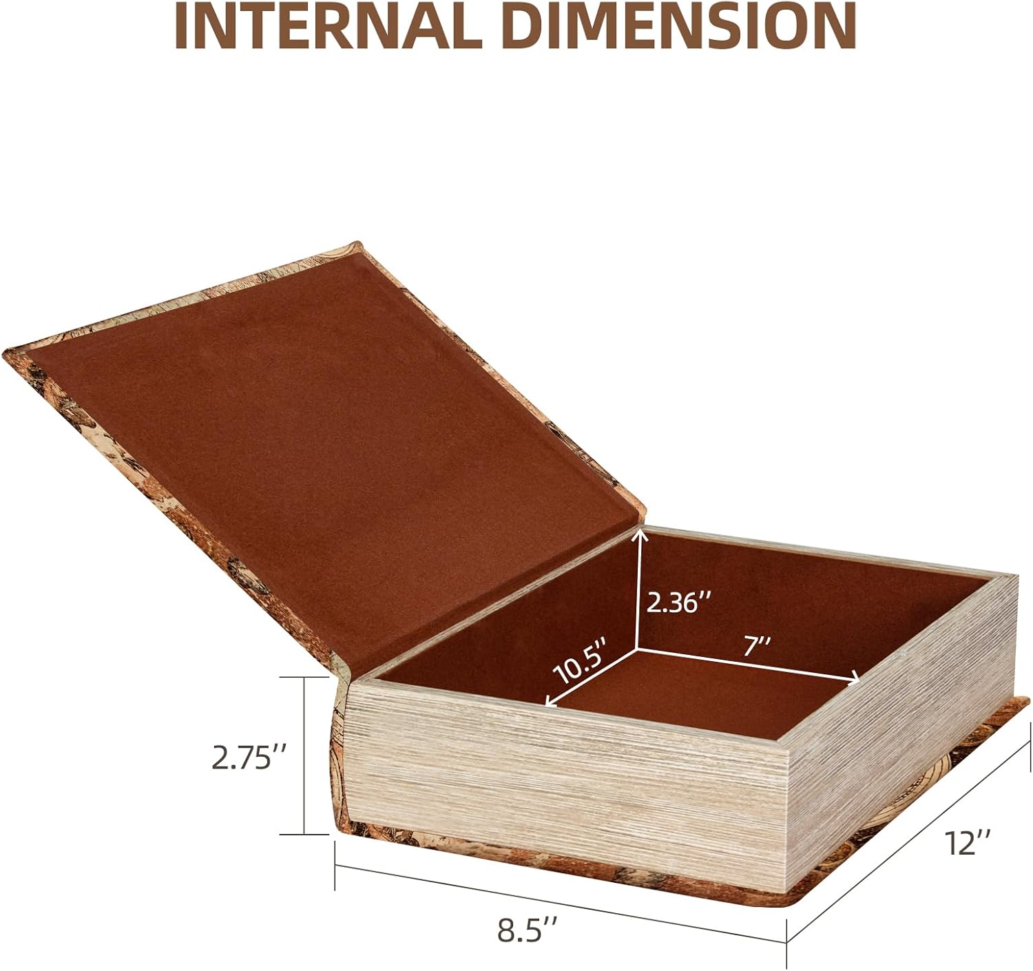 Decorative Fake Book Box for Shelf Decor, Coffee Table Storage & Home Decor - Vintage Faux Leather Embossed Secret Storage Box with Magnetic Closure (12" Large Size)