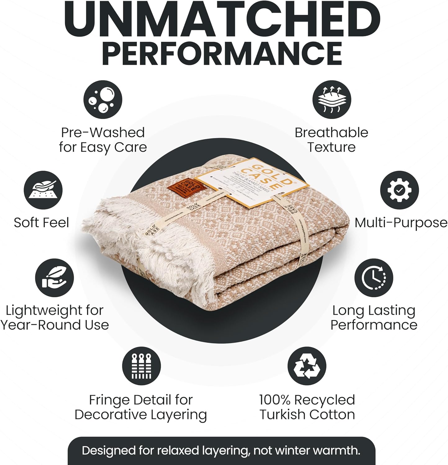 Gold Case Throw Blanket for Couch – 100% Recycled Turkish Cotton Blankets & Throws – Elegant Decorative Throw Blankets for Living Room Sofa – Woven Throws for Couch – Retro Beige – 50x60