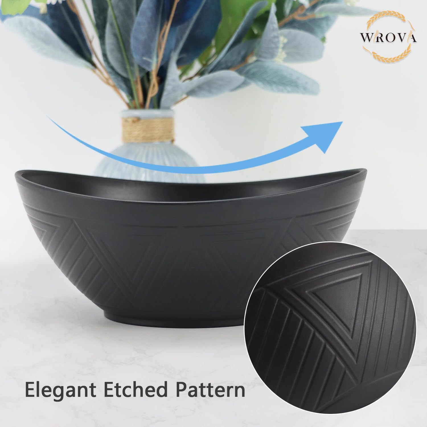 65oz Big Wheat Straw Bowls - Large Salad Bowls set of 6 - Unbreakable Serving Bowls - Microwave & Dishwasher Safe - Oval Bowls for Cereal,Salad,Fruit - Pure Black