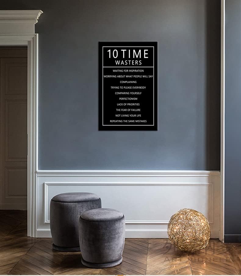 Inspirational 10 Time Wasters Wall Art for Office Motivational Positive Quote Canvas Poster Wall Decor Paintings Wooden Framed Artwork Living Room Bedroom Home Decoration Ready to Hang [24''W x 36''H]