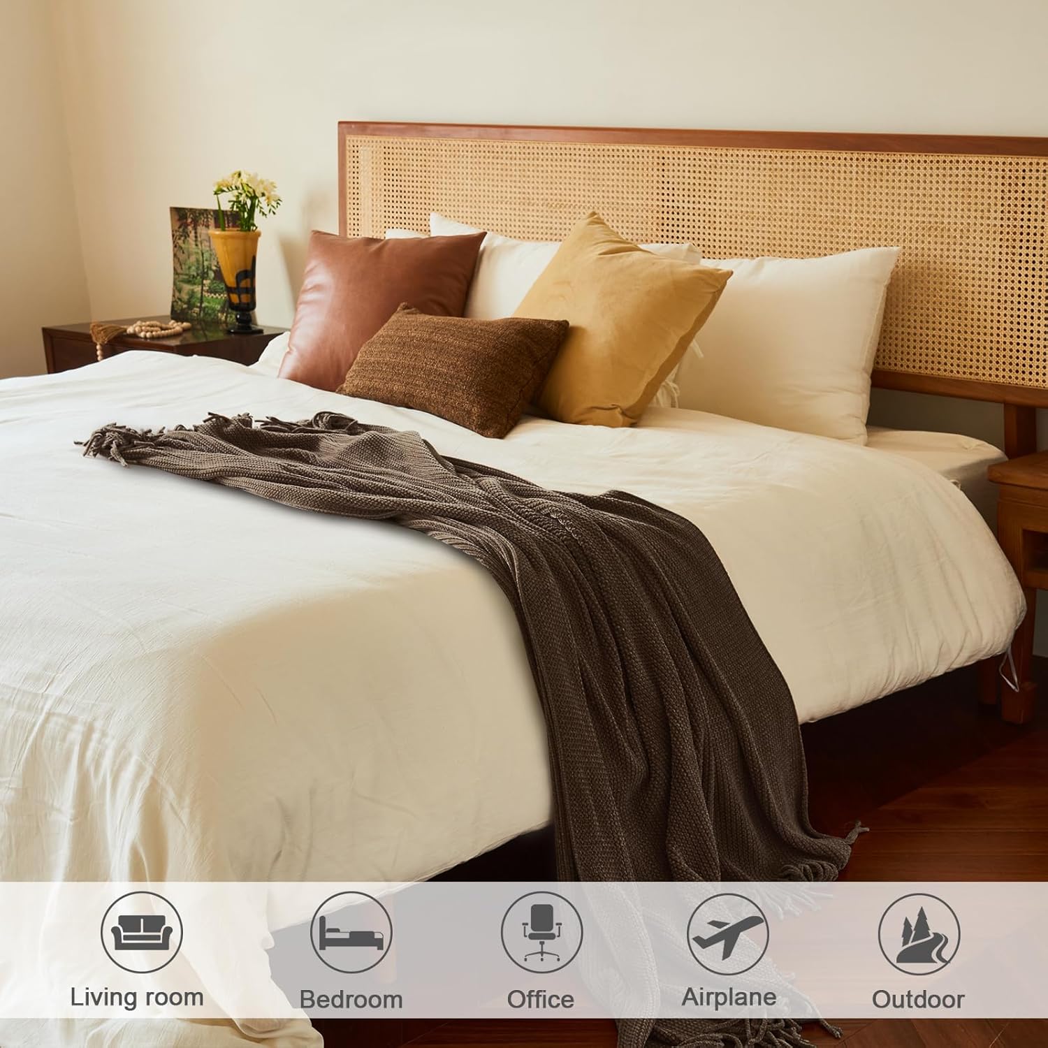 lifein Throw Blanket for Couch, Soft Boho Decor Bed Throw,Cozy Brown Knitted Chenille Small Farmhouse Lightweight Throw for Spring(Brown,50 * 60")