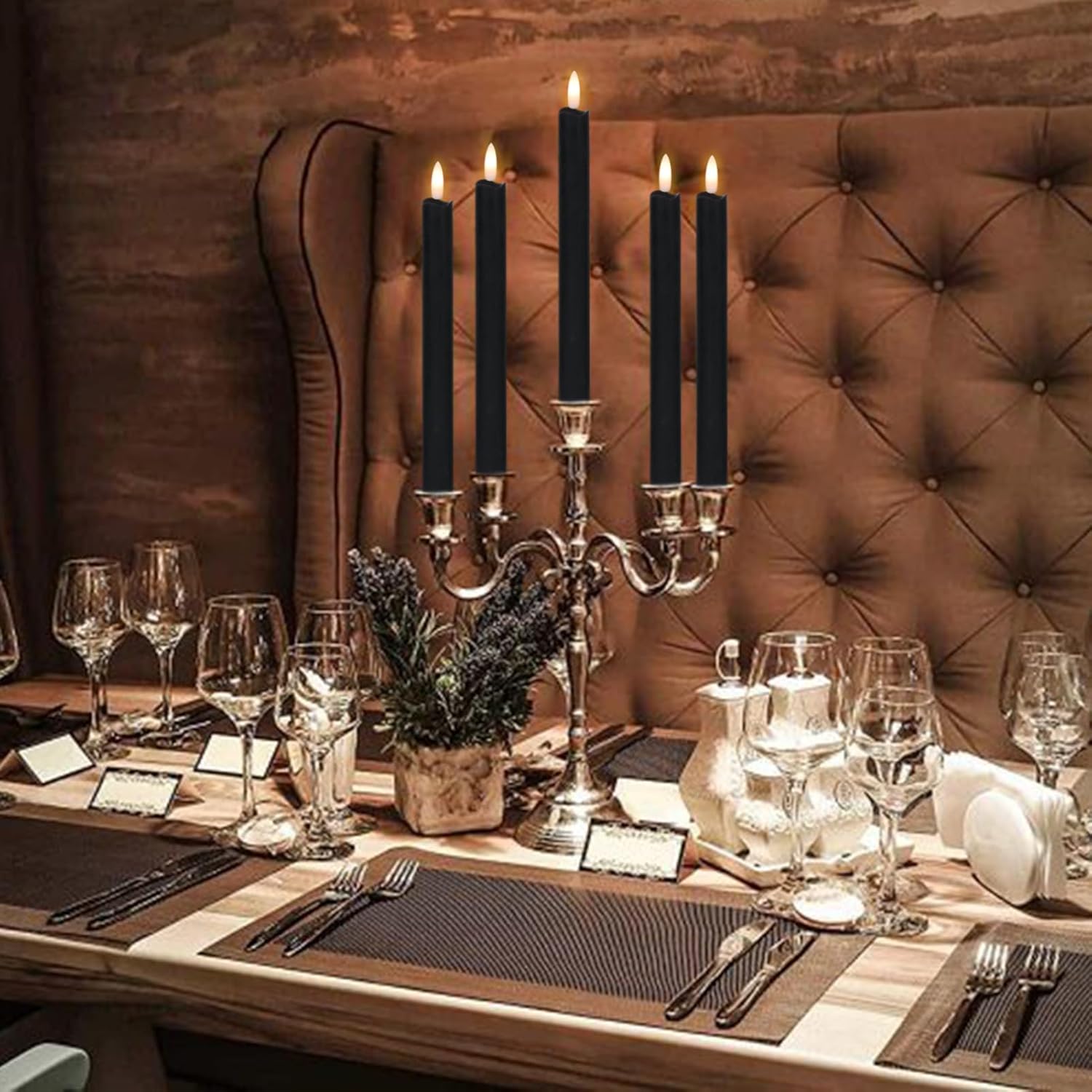 - EXCELLENT DESIGN: You don't need to use a candlestick to stand (you can also use it with a candlestick), These taper candles are made from real wax and 3D Wick realistic flicker design, feels and looks like a real wax taper candle flame. Warm light glow creates a romantic atmosphere when used as a dinner, party, wedding, birthday, or Christmas home decoration
