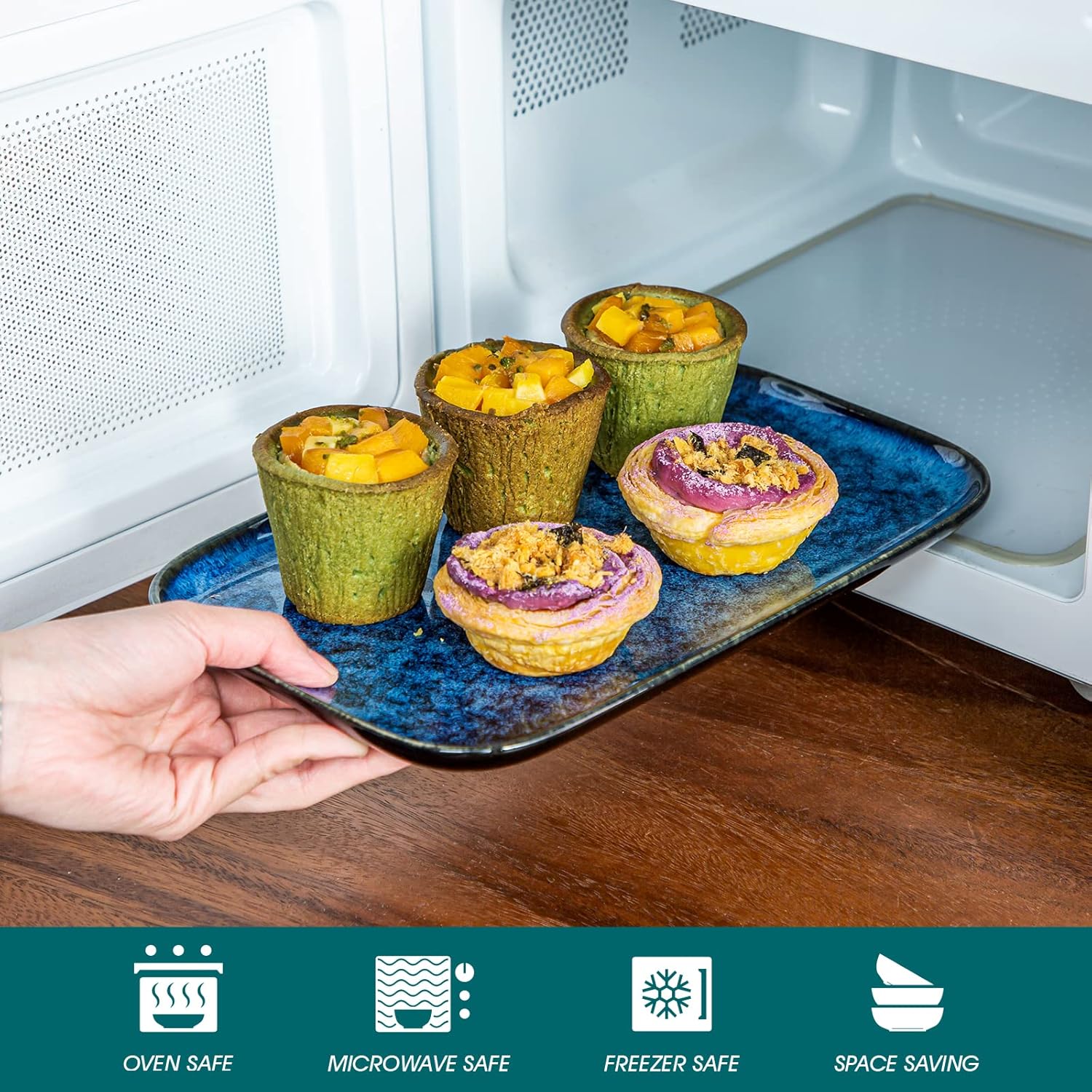 - 【Eye-Catching Platters】Set of 4, Measured 11 *6.6 * 0.7 inch. Crafted by reactive glaze, The special glaze color collides the colors to the extreme within the scope of craftsmanship. Giving a stylish impression, it suits both the modern and the rustic natural atmosphere. Everything tastes better and the mood is better when using these platters.