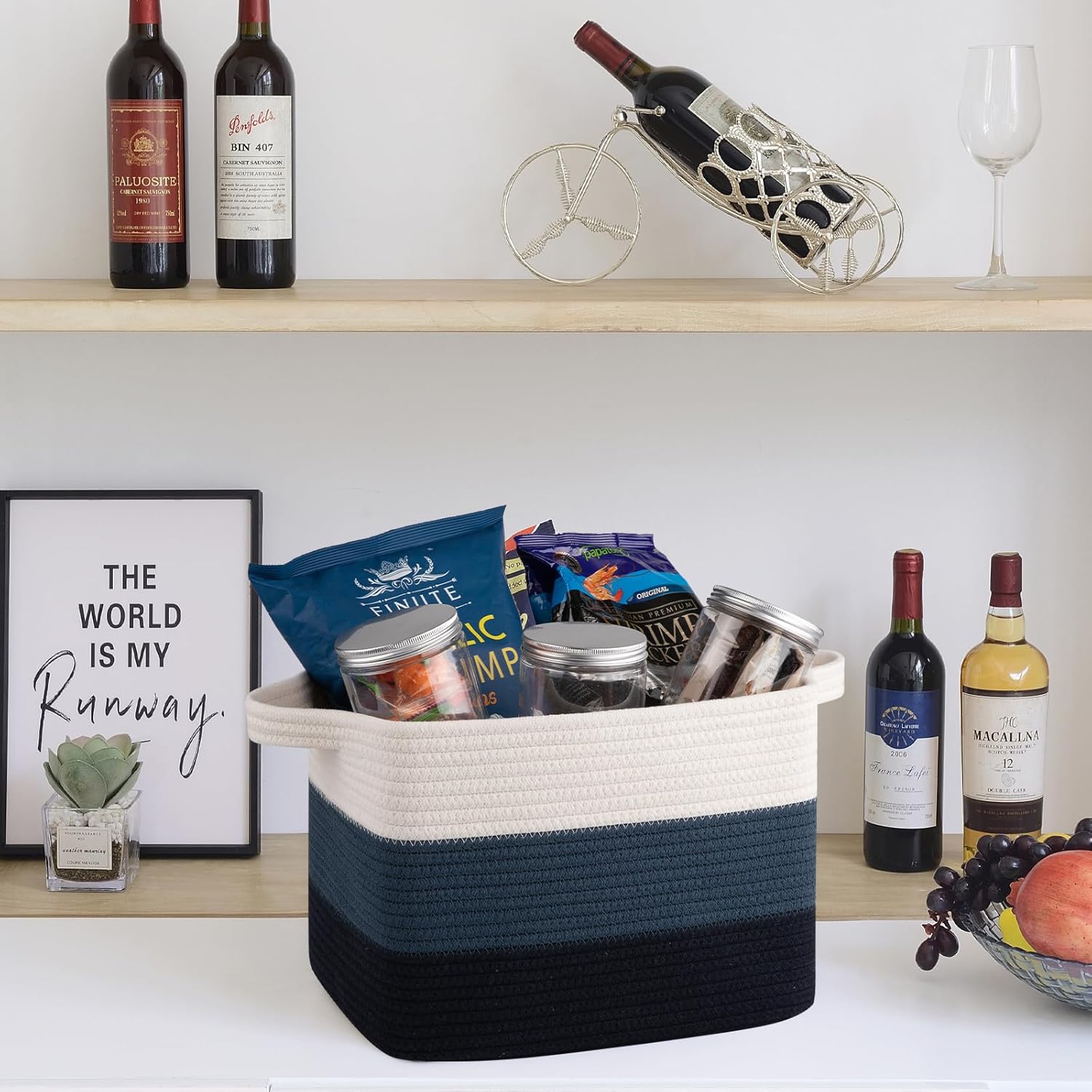 - High Quality Cotton Rope Woven: Woven cotton thread is very soft and don't damage your floors and furniture. Seamless design, not easy to tear,More firm than rattan and plastic materials. Our storage basket has no harsh chemiacls added, and the cotton rope basket is safe for kids, elders and pets. Firm enough and stylish enough to go anywhere in the home