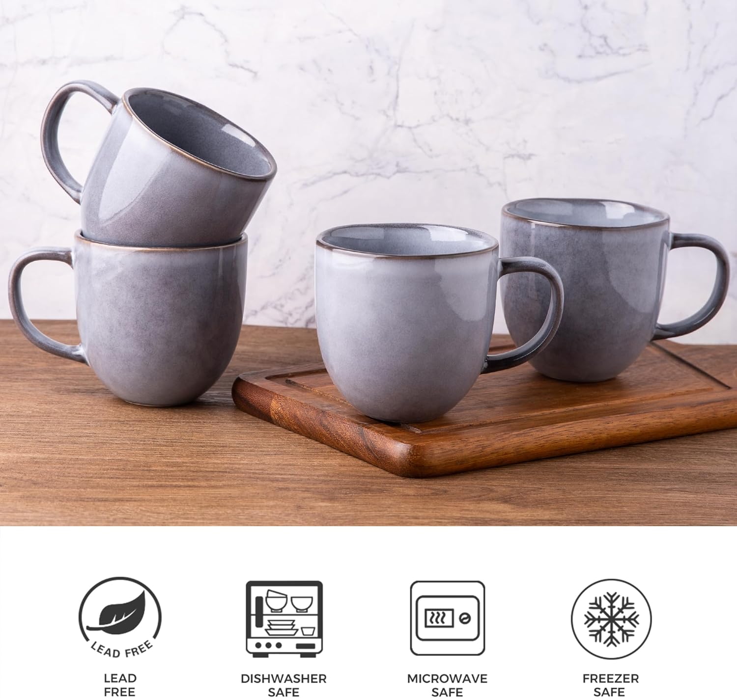 - EASY TO CLEAN & USE: These mugs are dishwasher and microwave safe, making them a convenient choice for busy households. The shiny glaze on the inside of each mug also helps prevent coffee stains from sticking, so you can enjoy your drink without any hassle.