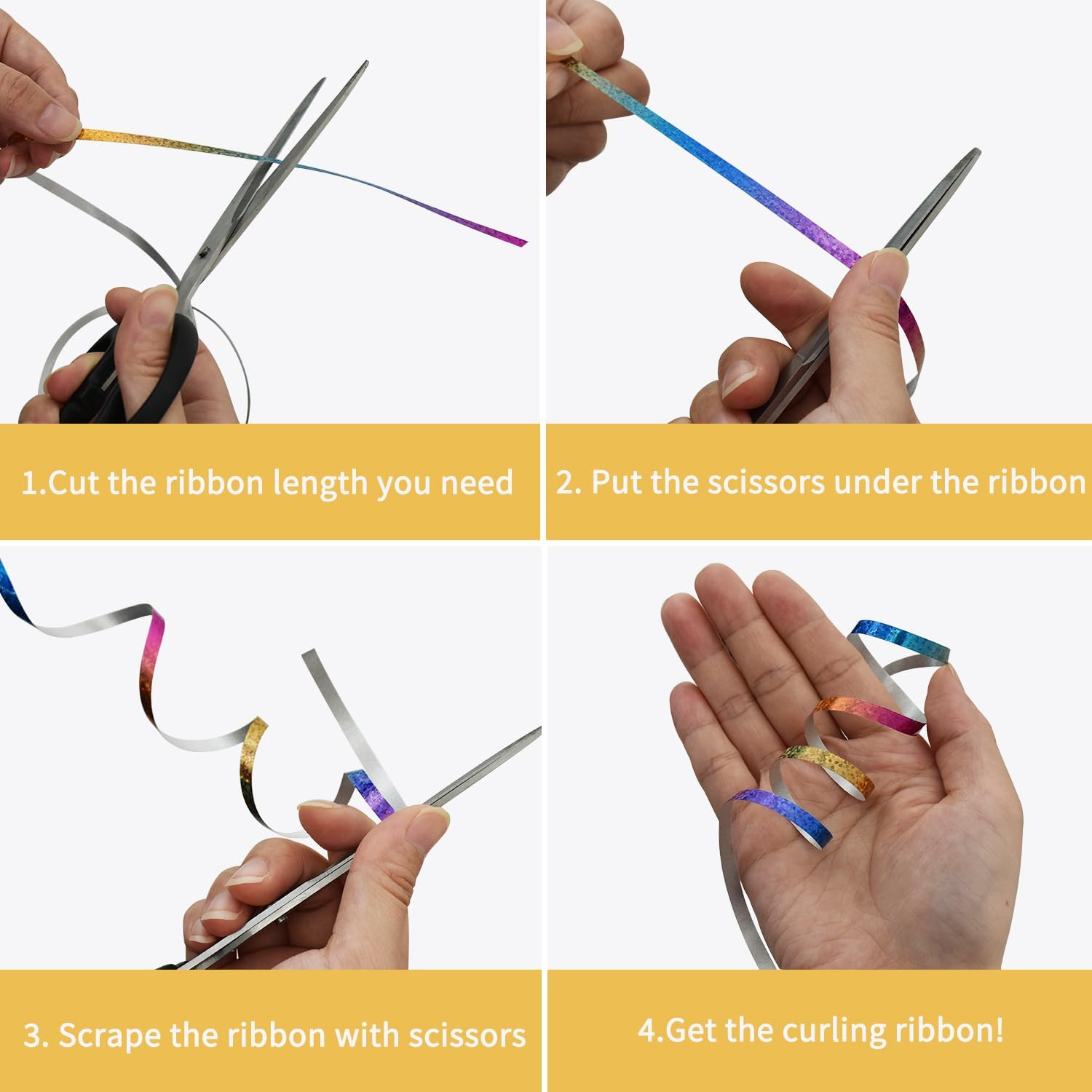 - 12 Assorted Colors Curling Ribbons - BEISHIDA colorful curling ribbon includes 12 colors: silver, gold,red,blue,green,teal,pink,light pink, purple,rose gold,rainbow and black. These 12 colors will be perfect to match all your craft making or party decorations!