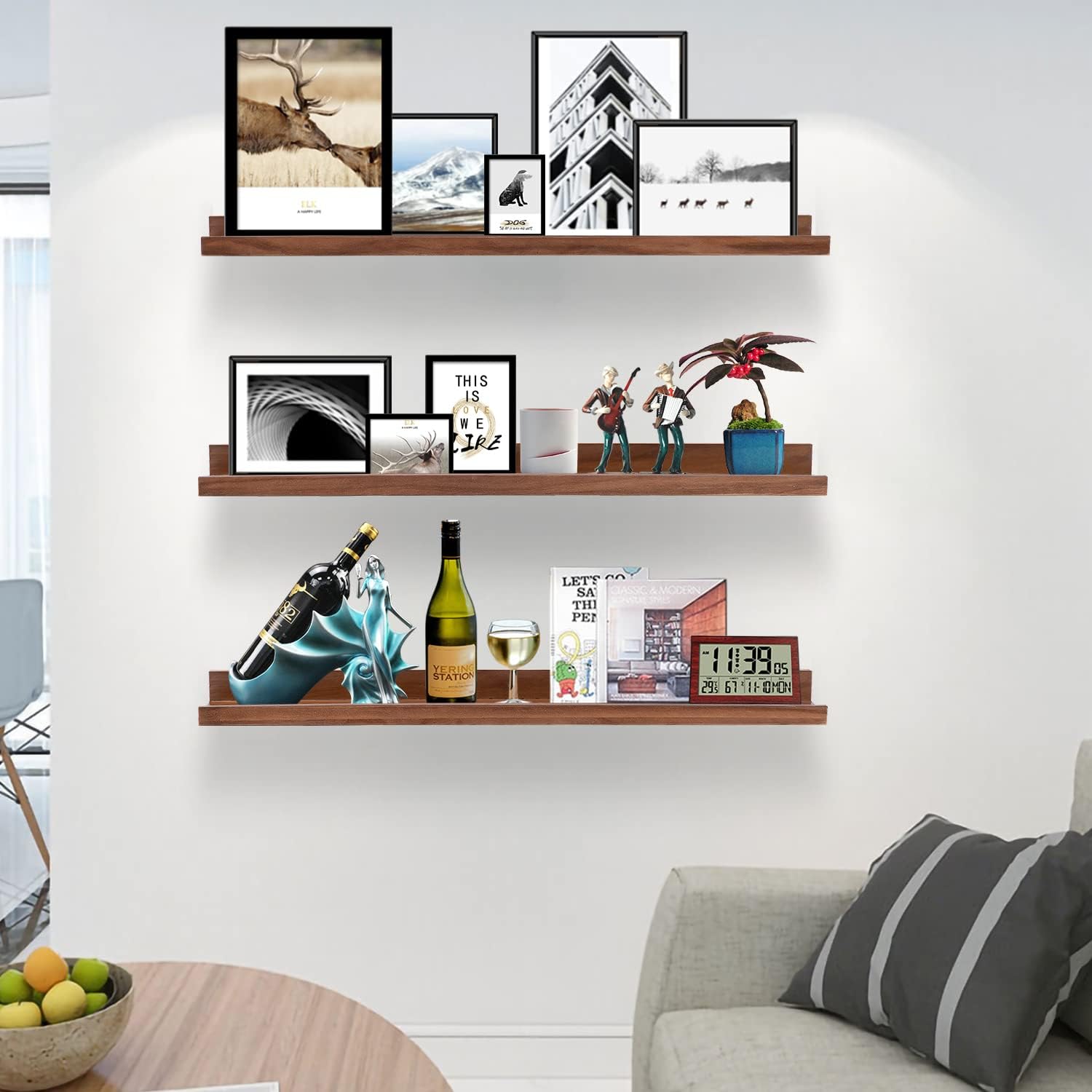 - Sturdy and Durable Wooden Shelves: Made of high-quality wood, these wooden ledges are strong and durable enough to withstand some weight. And with a very beautiful and natural walnut finish adds vintage style to your home.