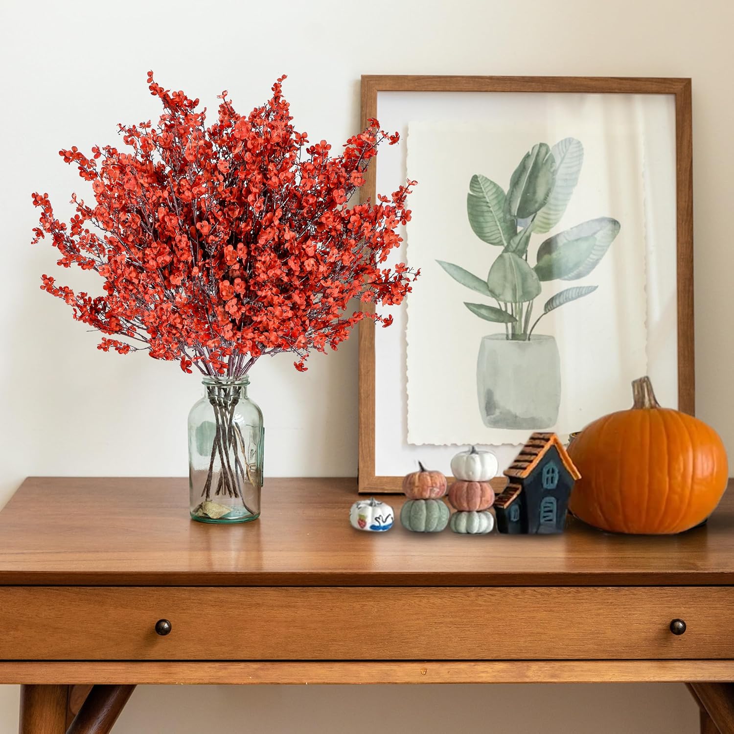 Sggvecsy 15 Pcs Babys Breath Artificial Flowers Gypsophila Bouquets Bulk Real Touch Fake Silk Flowers for Home DIY Floral Arrangement Table Centerpiece Fall Thanksgiving Autumn Decoration (Orange Red)