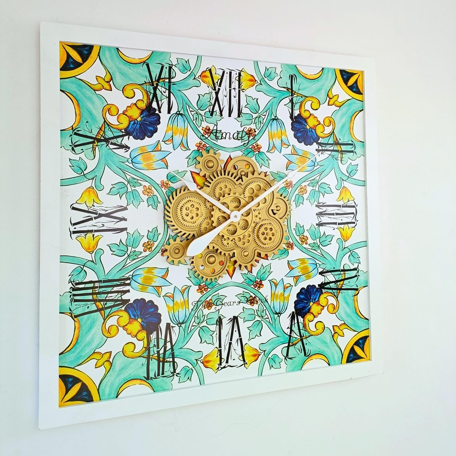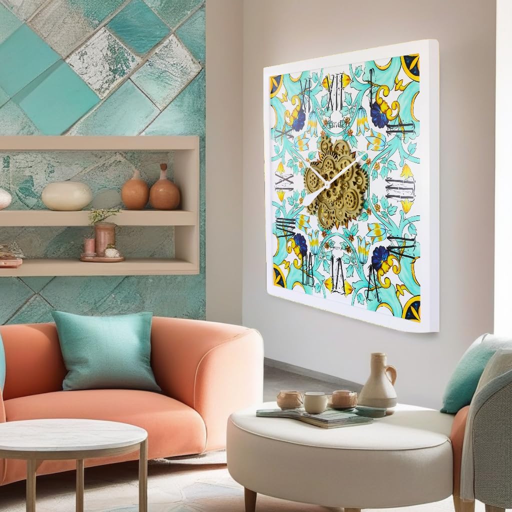 - Wall Clock Italy Collection with Real Moving Gears is an Art Timepiece inspired by the Famous Amalfi coast Tiles in Italy
