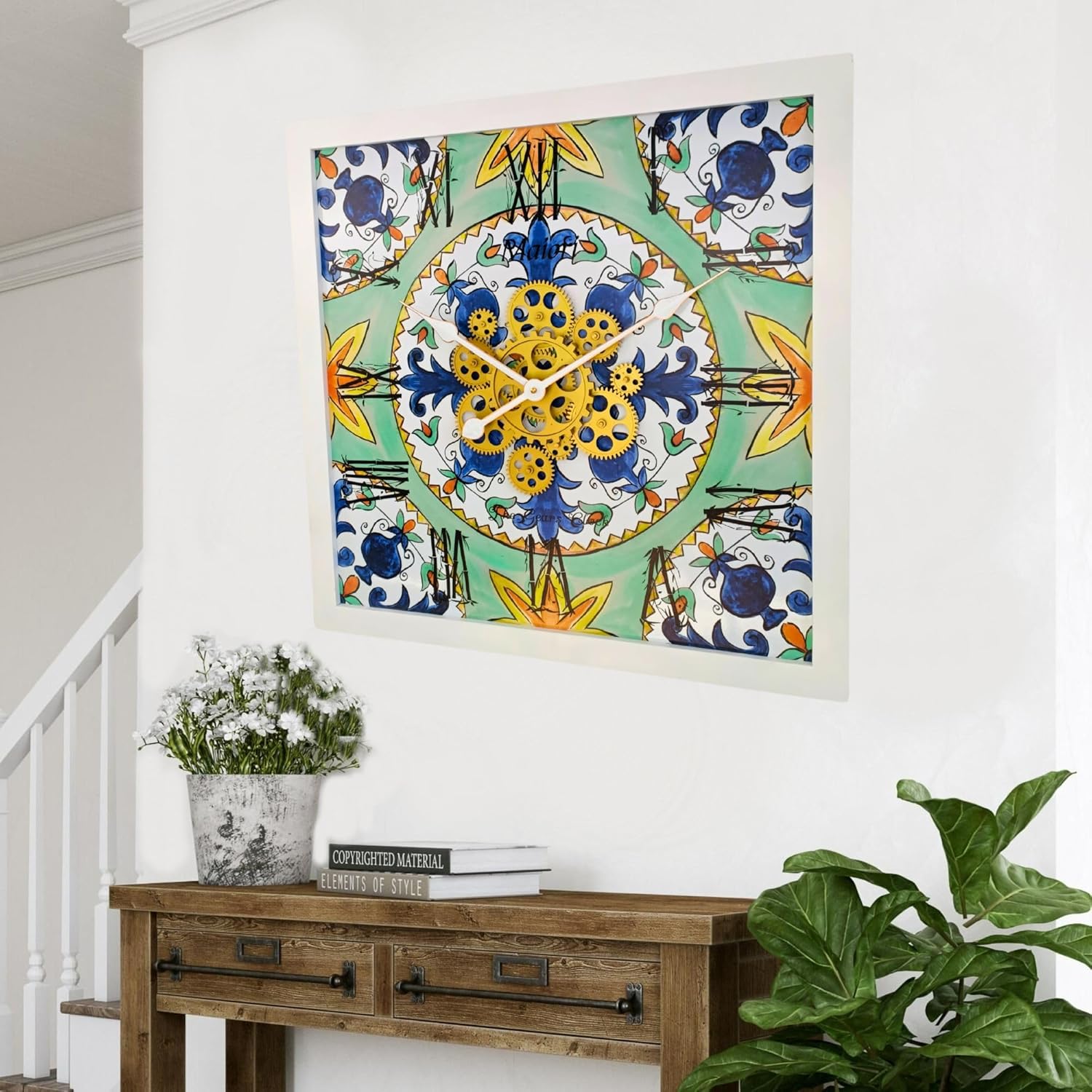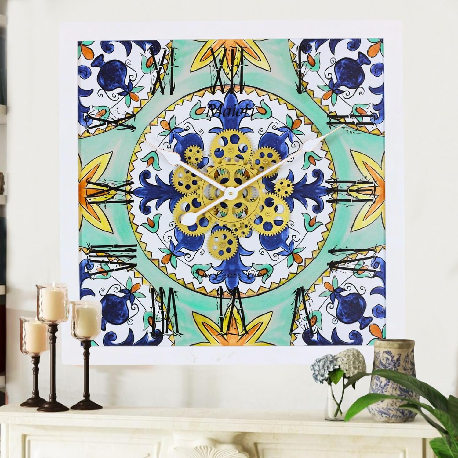 - Wall Clock Italy Collection with Real Moving Gears is an Art Timepiece inspired by the Famous Amalfi coast Tiles in Italy