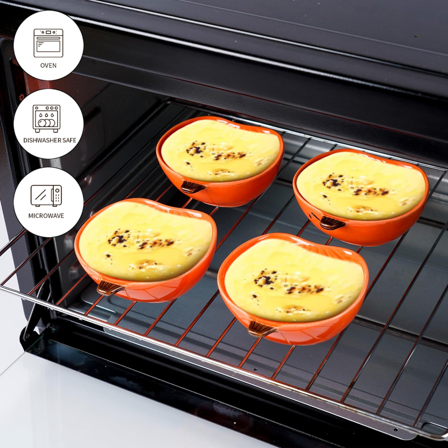- Safety material:the pumpkin bowls are made of top grade ceramic at a high temperature. Unlike plastic or wooden bowls, porcelain won't absorb odor or bacteria. These mini bowls are lead-free & cadmium free, and harmless. You can pop these pumpkin sauce cups in the microwave and wash up nicely in the dishwasher. They stack neatly and less cabinet space taken. Oven safe (Up to 572°F/300°C)