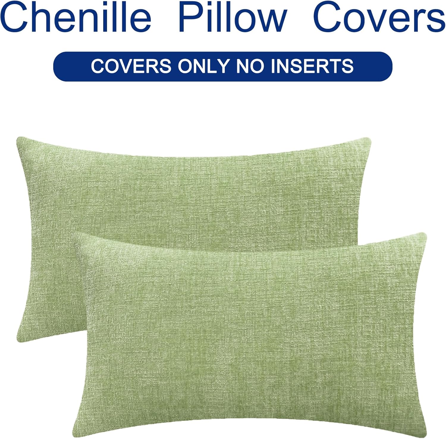 CaliTime Throw Pillow Covers Decorative 16 X 26 Inches Pack of 2 Cozy Chenille Cushion Cases for Couch Sofa Bed Living Room Home Sage Green