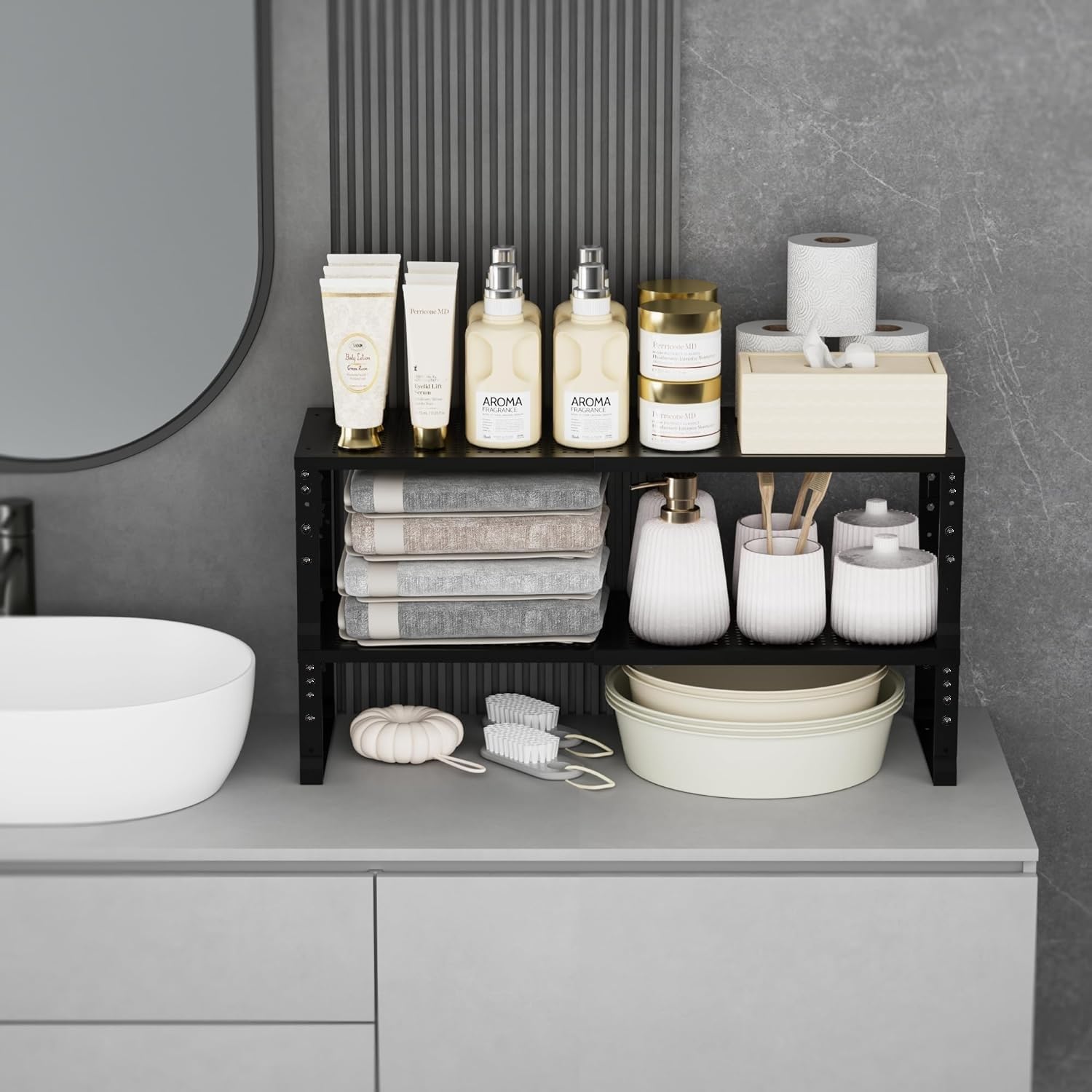 - ⭐[Multi-purpose]This Shelf can be used in various scenes of your house including cabinets,bathroom,dressing table or under a sink. Easily organizing your cabinets for the plates, bowls, snacks, books, foods,body lotion and other else.