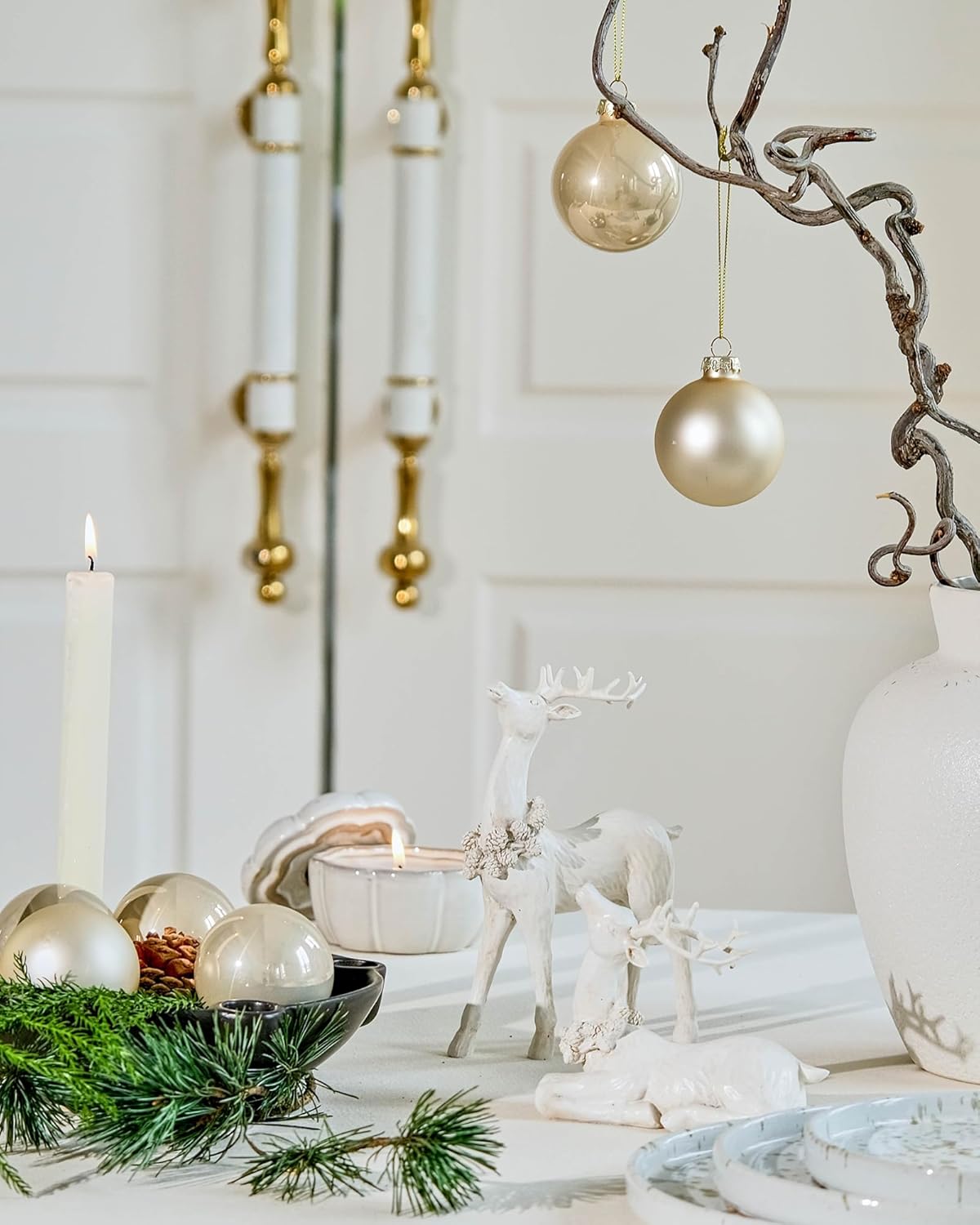 DN DECONATION 2pcs White Christmas Reindeer Statue, Indoor Reindeer Decor, Tabletop Resin Deer Figurine