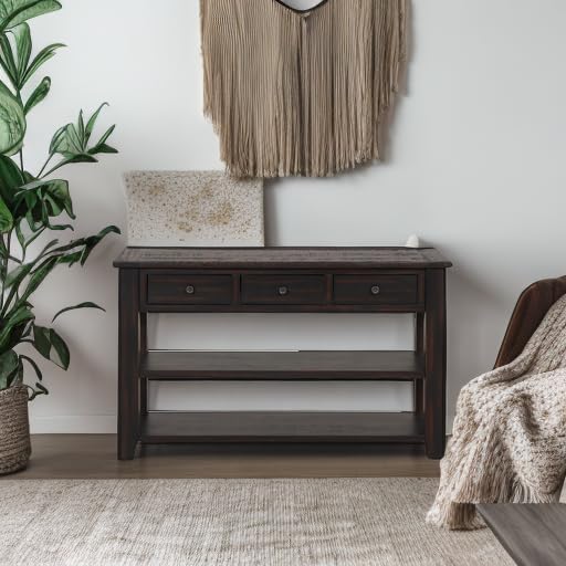 Solid Wood Console Table,Sofa Table with Storage Drawers and Bottom Shelf,Entryway Table for Entry Hallway Foyer,Fully Assembled (48.8" Distressed Black)