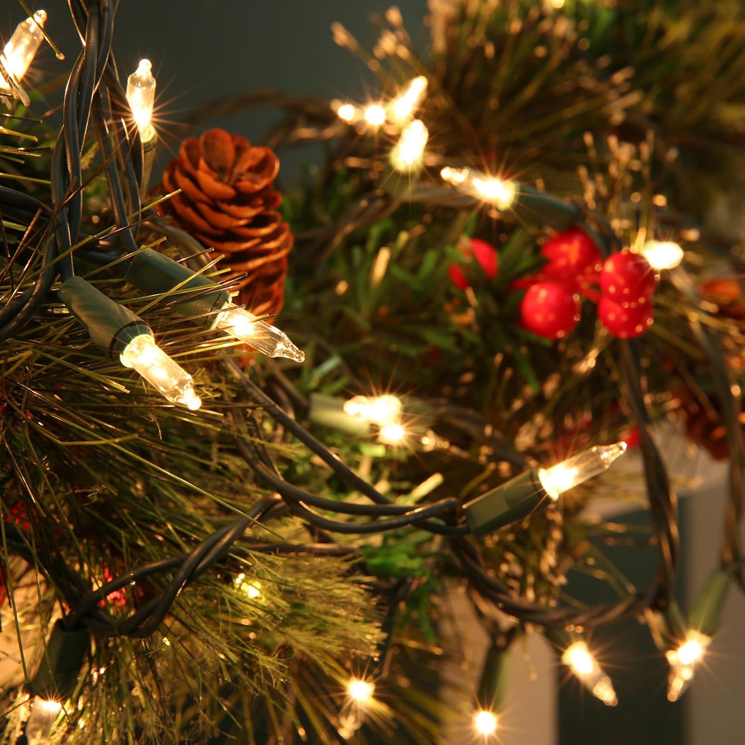 - 🎄 End-to-End Connectable & Easy to Install: Each Christmas string light features a male and a female safe plug, an easy end-to-end connection allows up to 10 strands (125ft in total) connected together to illuminate a wider range. Just hang the string light on wherever you like, power on, you will get a charming night with these bright lights!