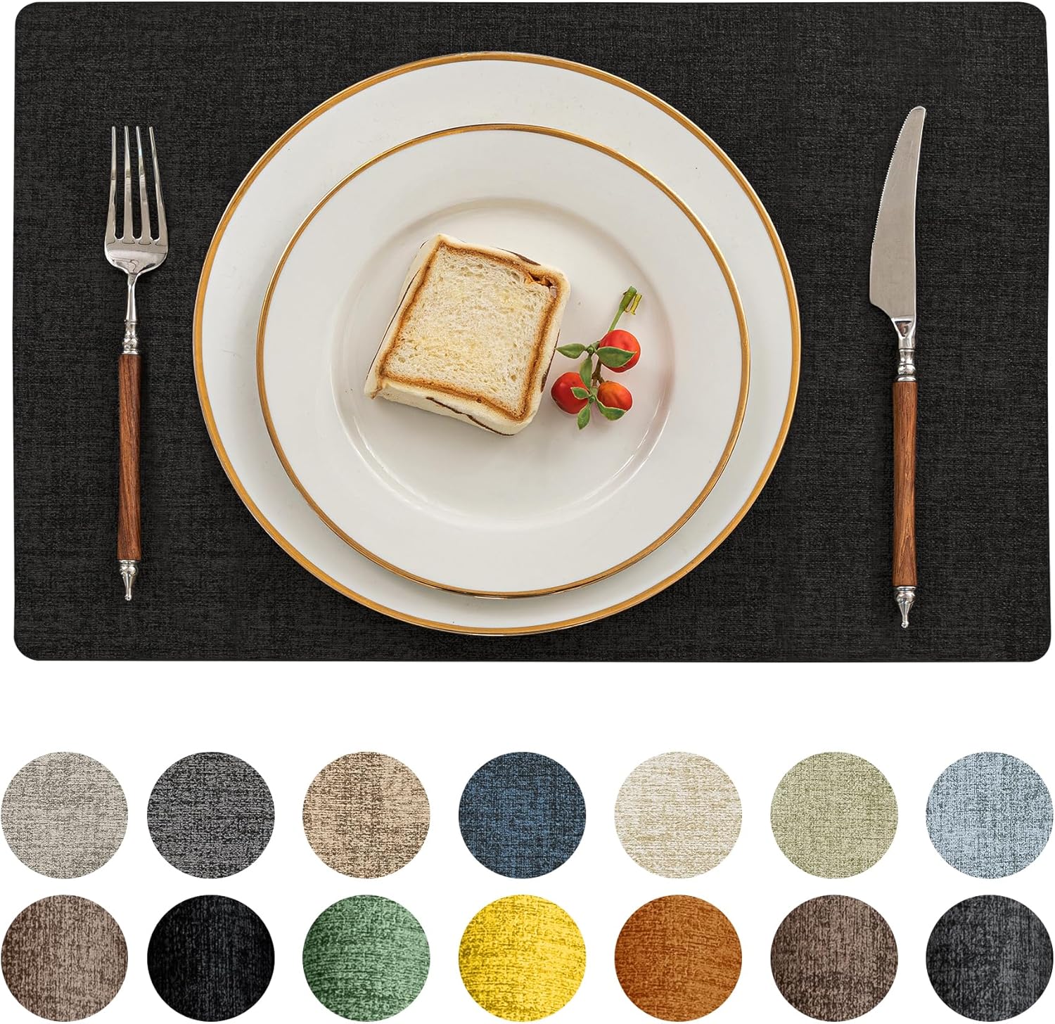 Romanstile Vinyl Placemats Set of 4-12 X 18 Inch - Heat Resistant Place Mats 100% Waterproof Oilproof Wipeable Reversible Faux Leather Table Mats for Kitchen/Dining/Party/Holiday, Black