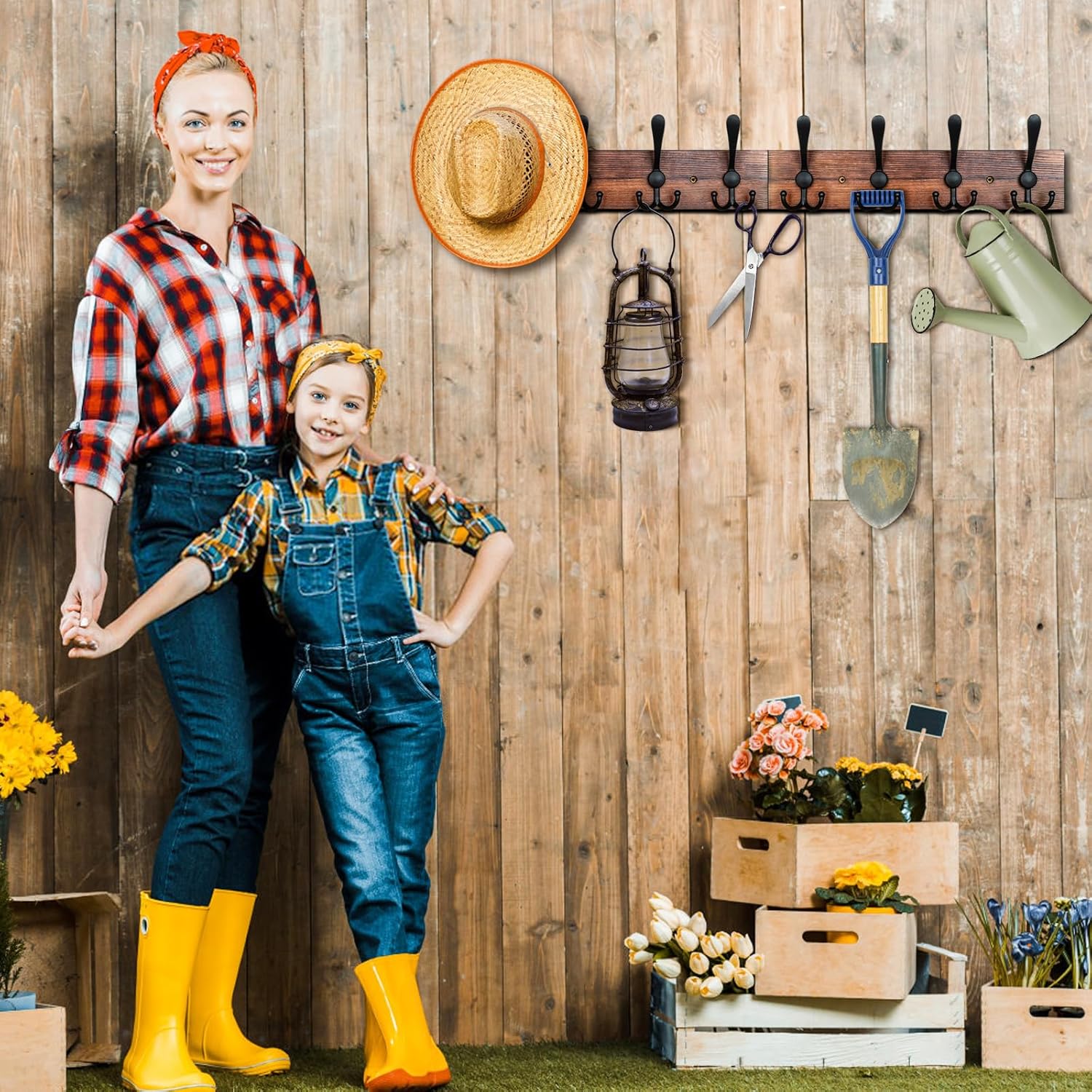 - Material - Made of rustic wood and aluminium alloy, each sturdy metal hooks can hold up to 25 lbs of weight